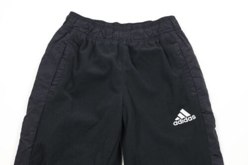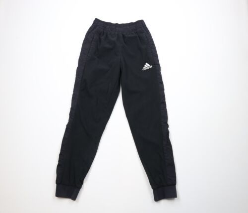 Vintage Adidas Mens Small Faded Spell Out Cuffed Fleece Joggers Sweatpants Black