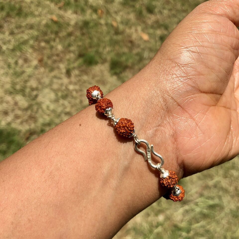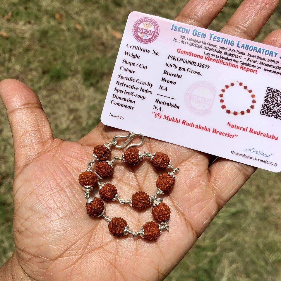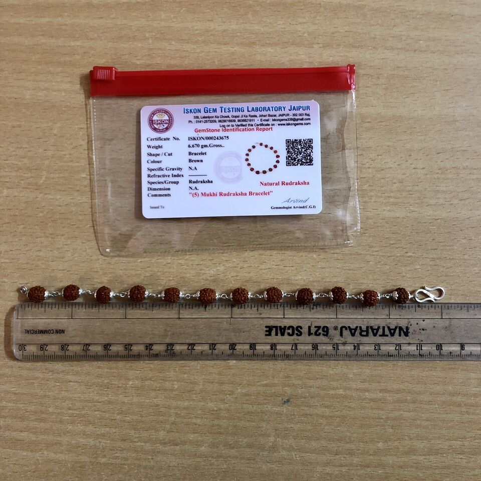 LABORZERTIFIZIERTES natürliches RUDRAKSHA Rudraksh Armband in 925 Sterlingsilber 8 Zoll L NGE indischer Herkunft Lord Shivas Yoga Gebetsmeditation, Unisex