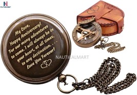 The compass features a beautifully engraved heartfelt message: "My Love, Happy Anniversary! For our many adventures to come. I will always be in your heart at all times, to any destination! Love You Forever!" This personal touch adds sentimental value, making it a cherished keepsake.