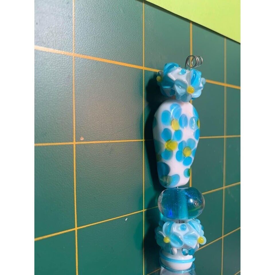 Handmade Aqua and white Glass Lampwork Beads and 50 similar items