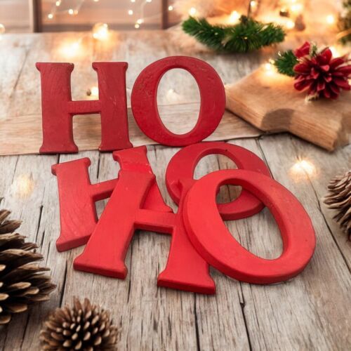 Ho Ho Ho Vtg Red Faux Wood Foam Hanging Christmas Letters