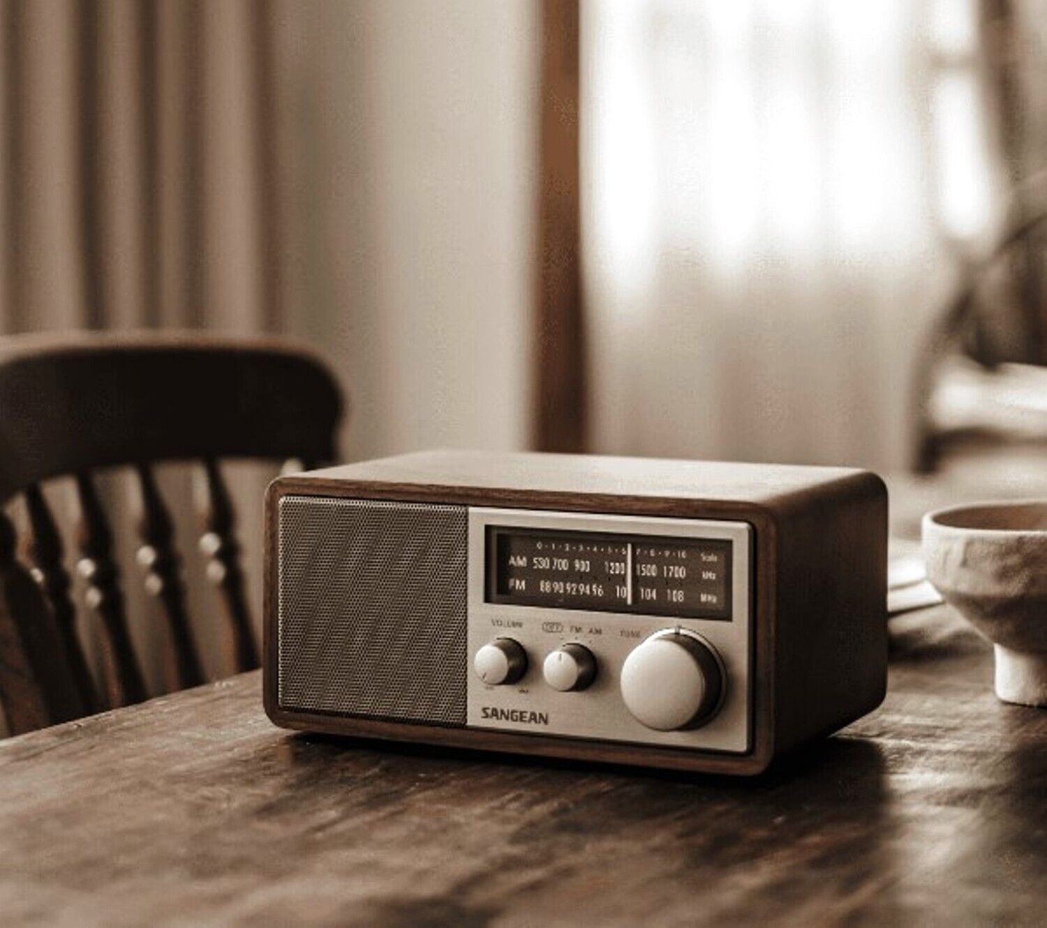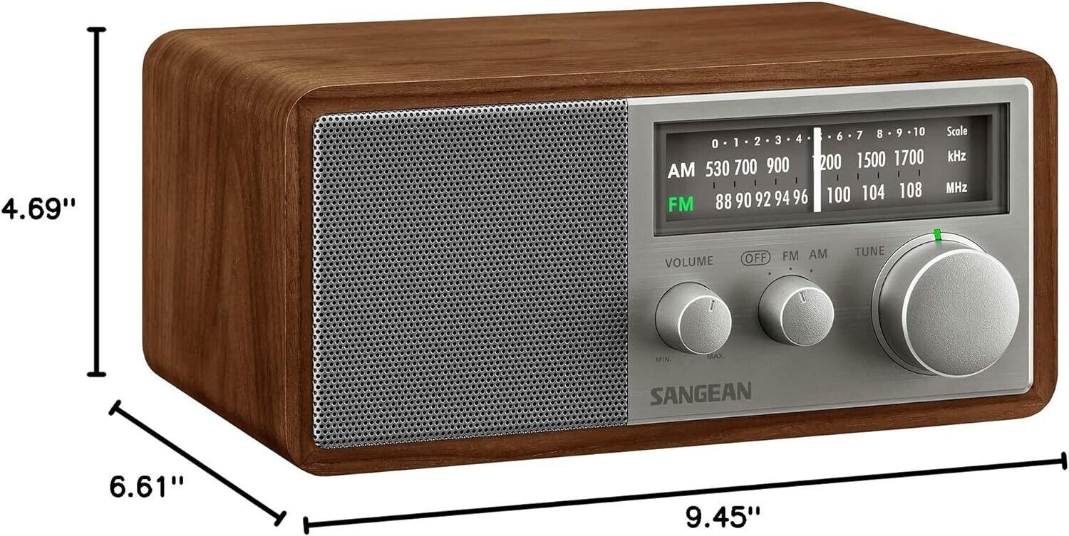 Sangean SG-116 AM/FM Analog Wooden Cabinet Receiver, Walnut, 6.5W Output Power