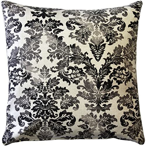 Product description: The 20 inch square Calliope Gray Damask Pattern Throw Pillow features a distressed gray damask print. Purposefully faded in certain areas, the pillow has vintage charm and a rustic look. The design is printed on a soft yet sturdy broad weave fabric made from a high quality cotton, linen, polyester blend.