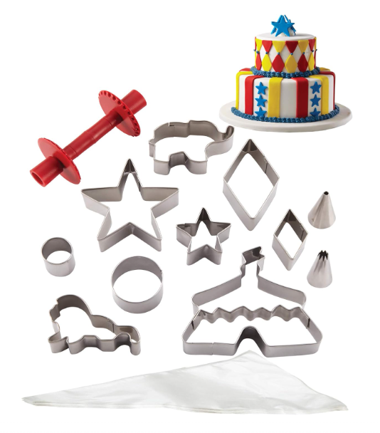Get ready to create your own delicious and stunning cakes with this 24-piece Cake Boss Circus Cake Kit. The kit includes a variety of cutter/shape tools, all made of durable stainless steel, allowing you to create intricate designs for any occasion.