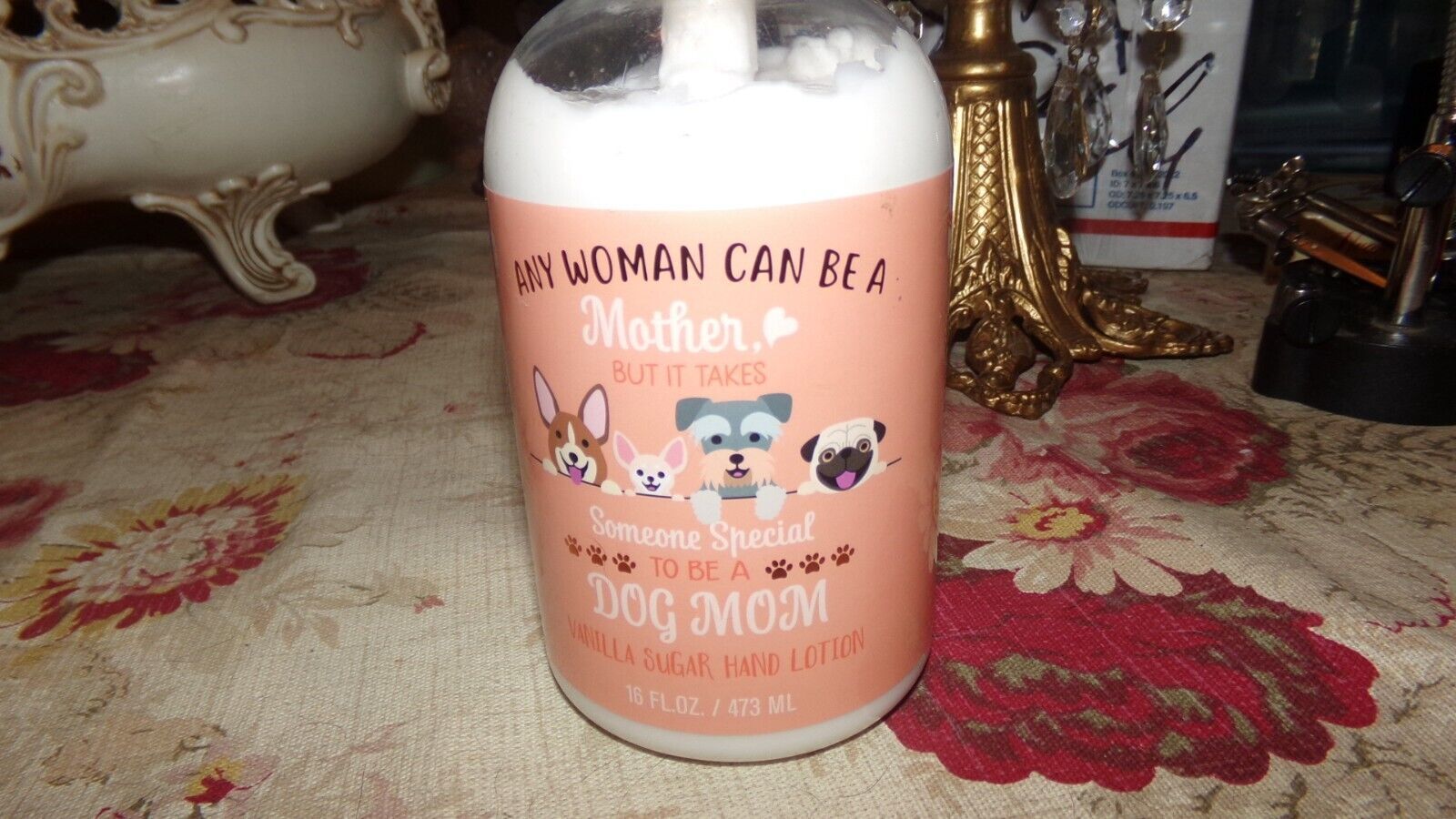 DOG MOM LOTION VANILLA SUGAR ANY WOMAN CAN BE A MOTHER SOMEONE SPECIAL NEW1! 16 FL. OZ. PUMP BOTTLE.