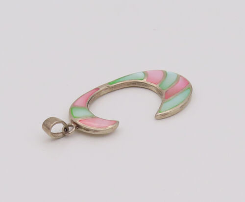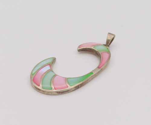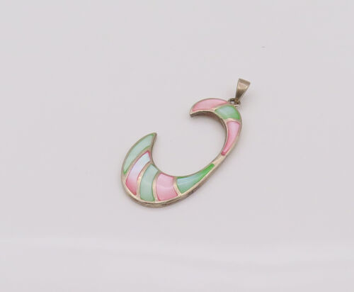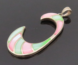925 Silver - Vintage Two Tone Mother Of Pearl Reverse C Pendant - PT22053