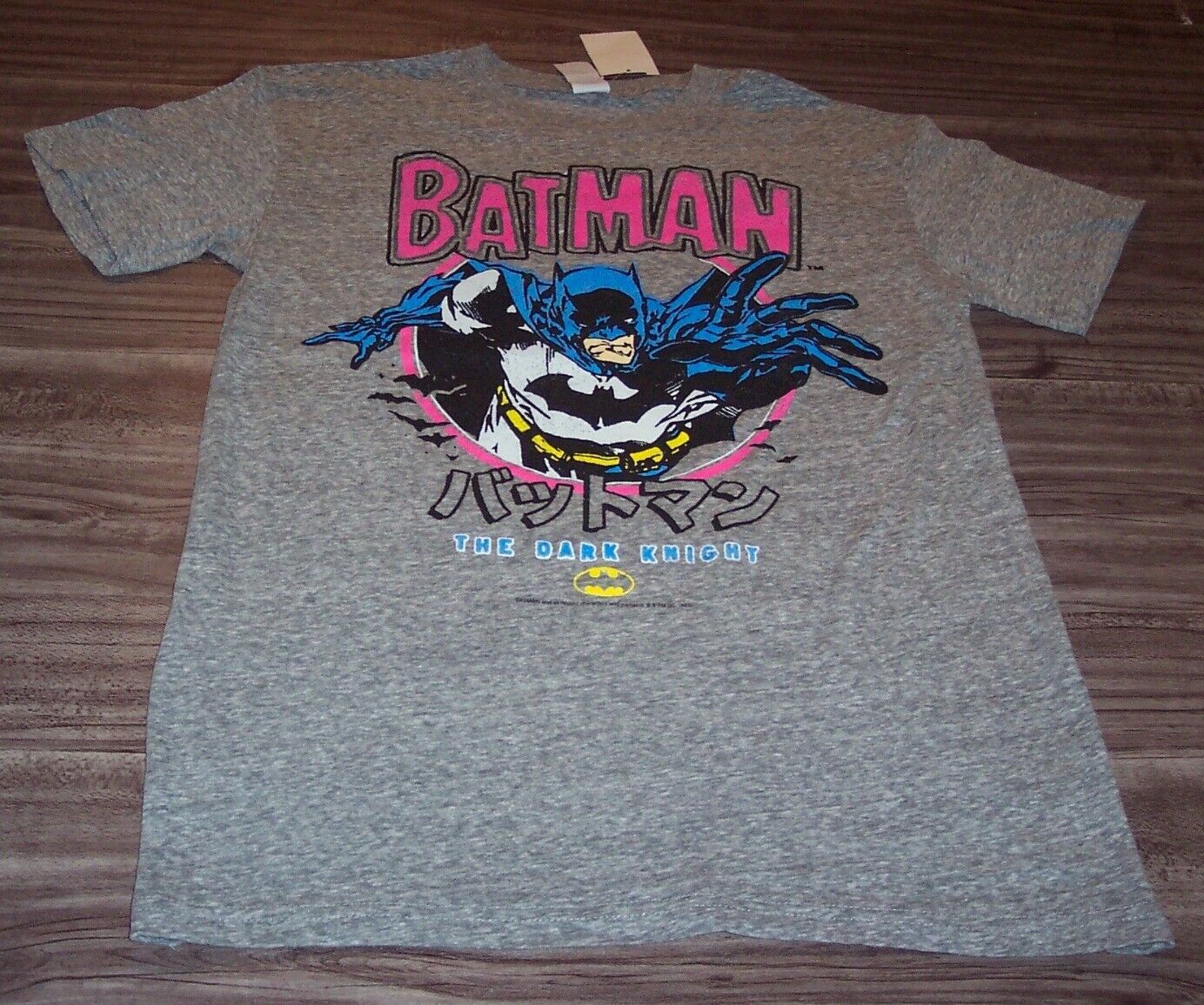 This is a VINTAGE STYLE Dc Comics BATMAN The Dark Knight T-shirt. It is a size SMALL and it is NEW with the tag. It is 19 inches from armpit to armpit and 27 inches in length. The print is made to look vintage. Soft! Combine auctions to save on shipping. AG