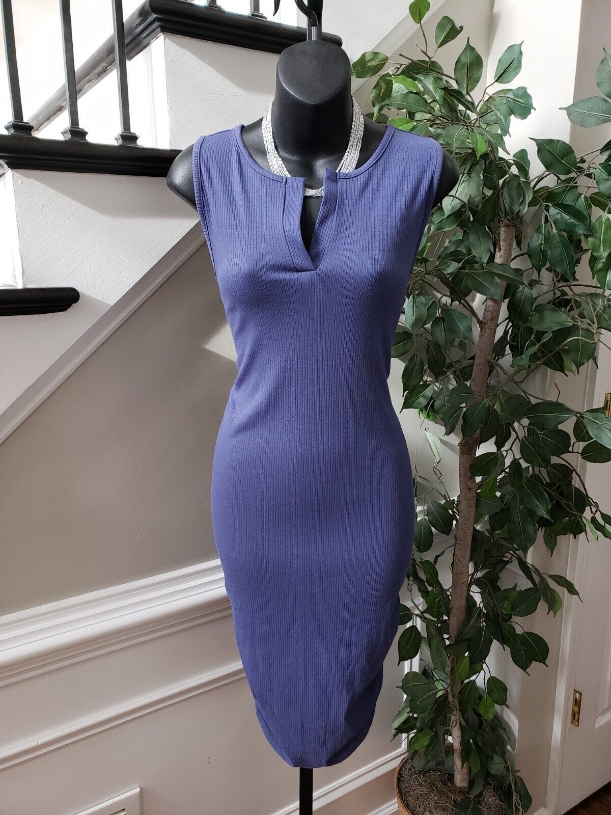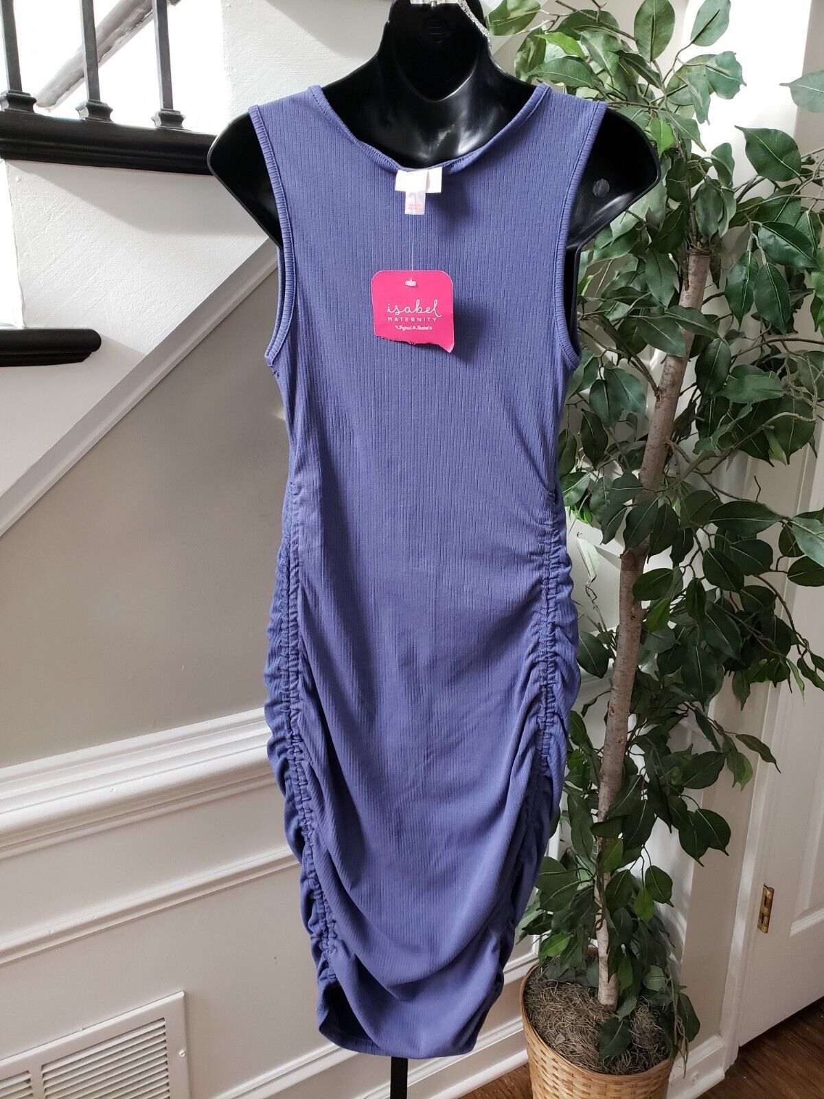 Isabel Maternity Women's Blue Polyester V-Neck Sleeveless Knee Length Dress XS.