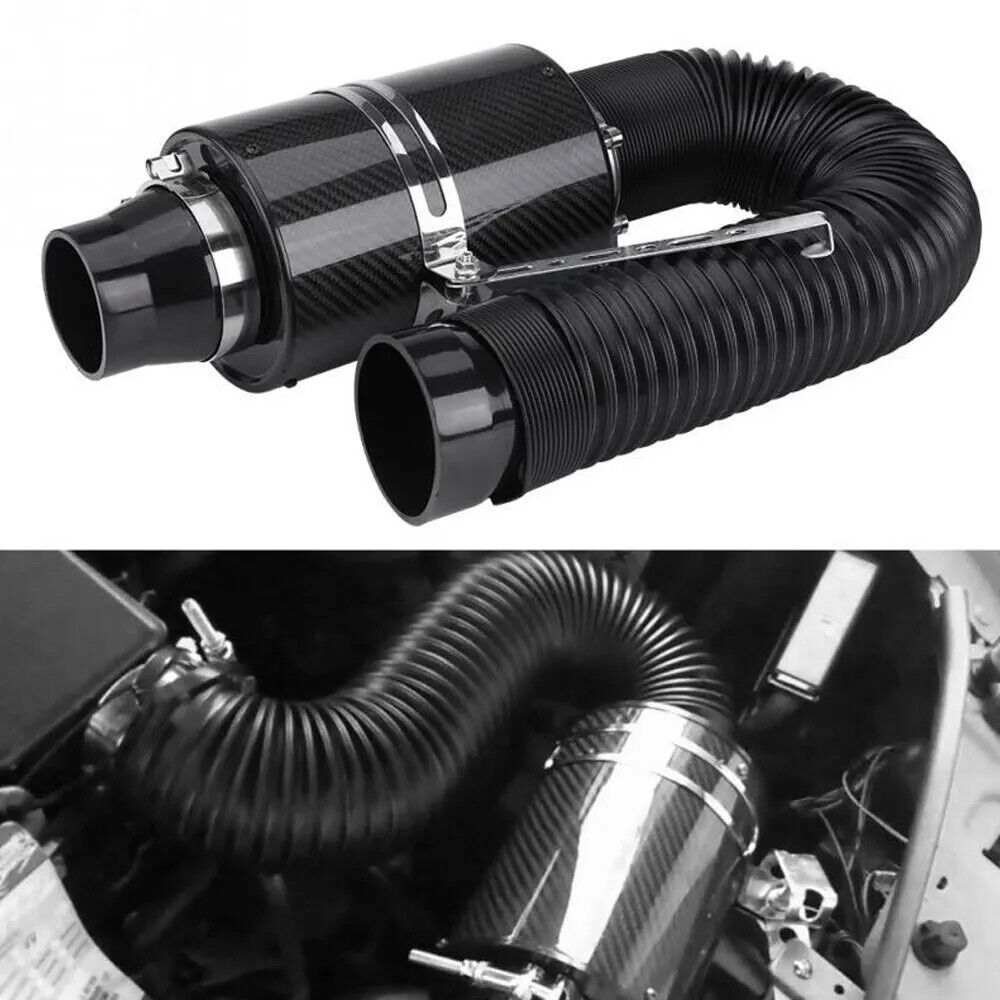 1 Set Universal Car 3 inch Carbon Fibre Cold Air Filter Feed Enclosed Intake Induction Pipe Hose Kit Universal
