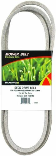 MaxPower 336319 Deck drive belt for 46" Cut Poulan/Husqvarna/Craftsman replaces OEM no. 405143, 532405143, 58445310, Pp21008, 575937701, 7133156 also replaces Ariens OEM no. 21546607 This belt measures 105-3/4" In length 1/2" In width. Fits 2007 models with 46" Twin blade decks. Double covered, Aramid cord construction. MaxPower extensive line of replacement belts are manufactured to Meet Or Exceed OEM specifications.