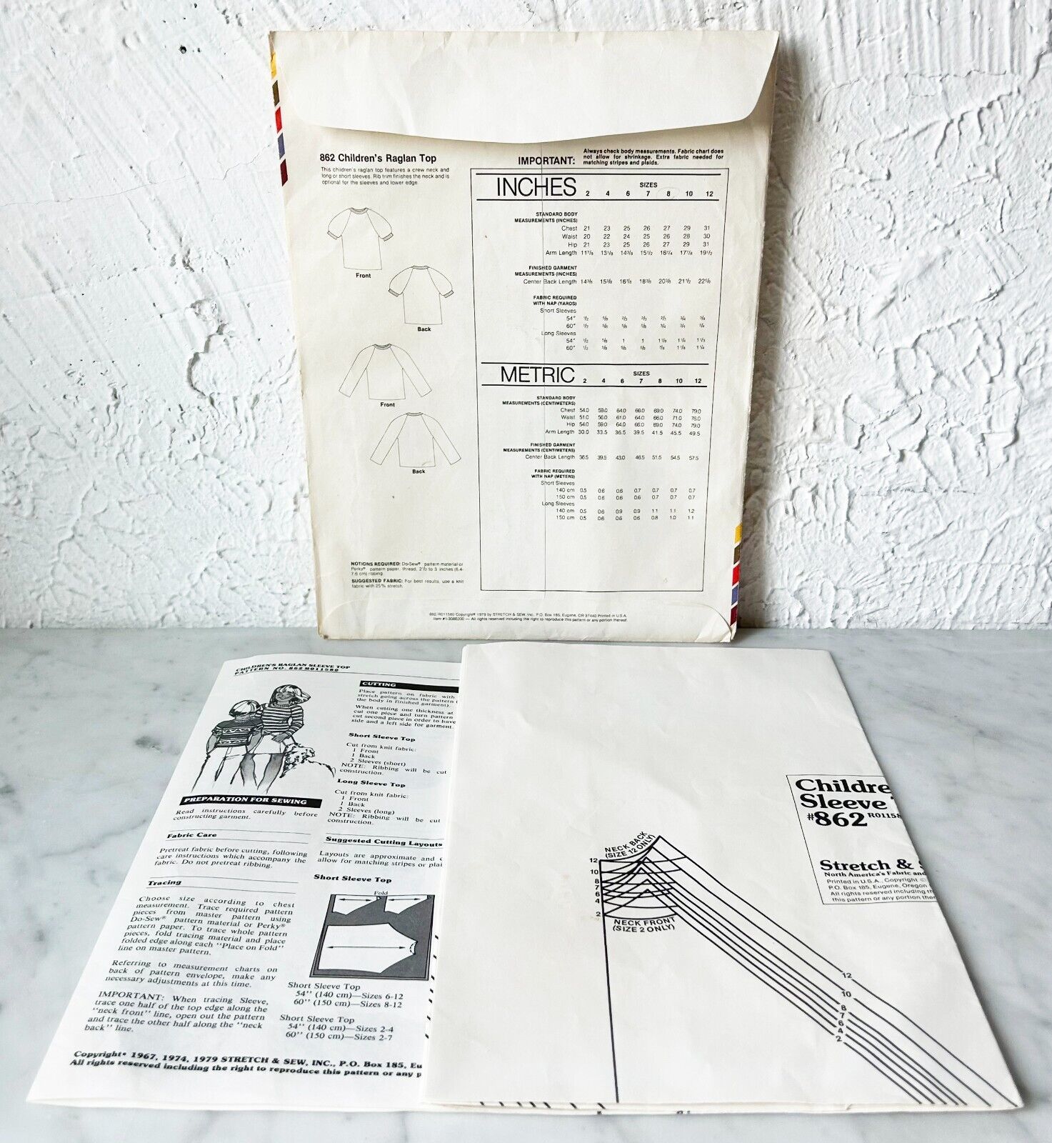 Vintage 1979 Ann Person Stretch Sew sewing pattern #862 is uncut. Children's Raglan Top, sizes: 2-4-6-8-10-12. Includes tracing paper used by previous owner. Please see the pictures for all the details.