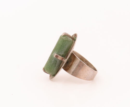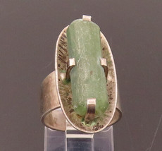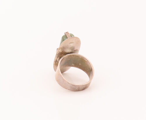 EUROPE 925 Silver - Vintage Green Tourmaline Disk Clamped Ring Sz 5.5- RG26589