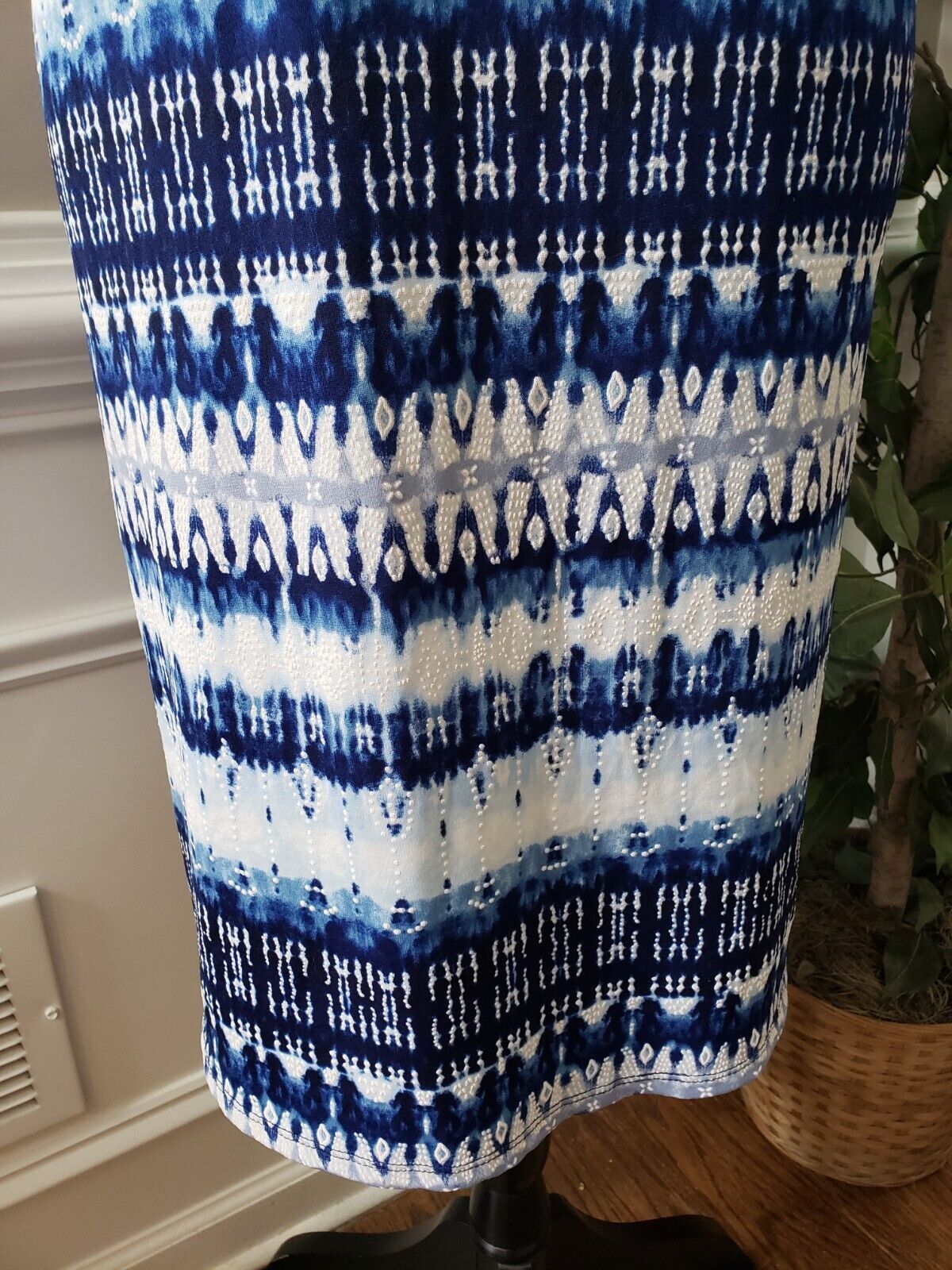 AGB Womens Blue & White Polyester Round Neck Sleeveless Knee Length Dress Size M