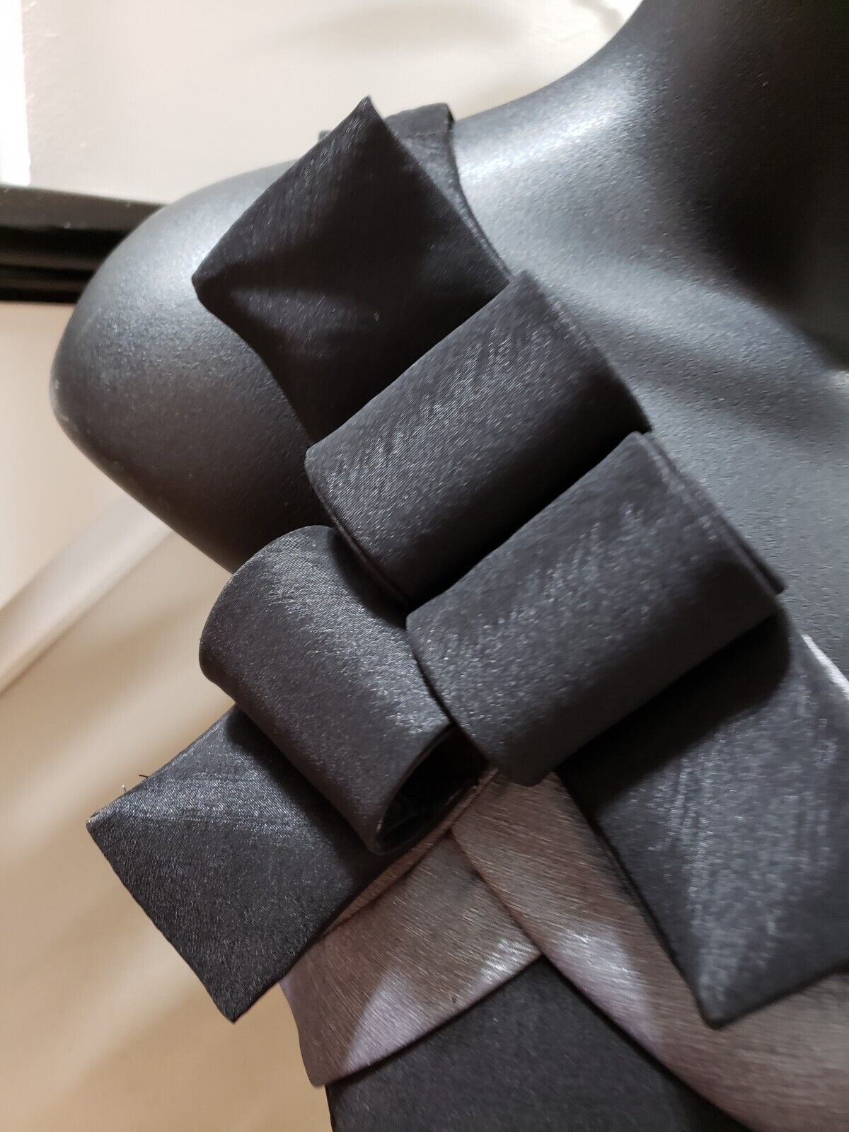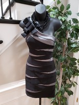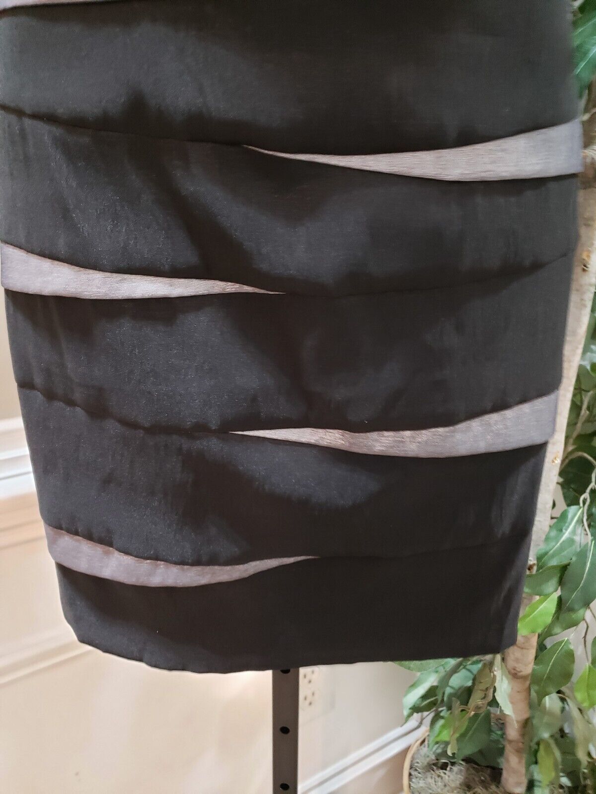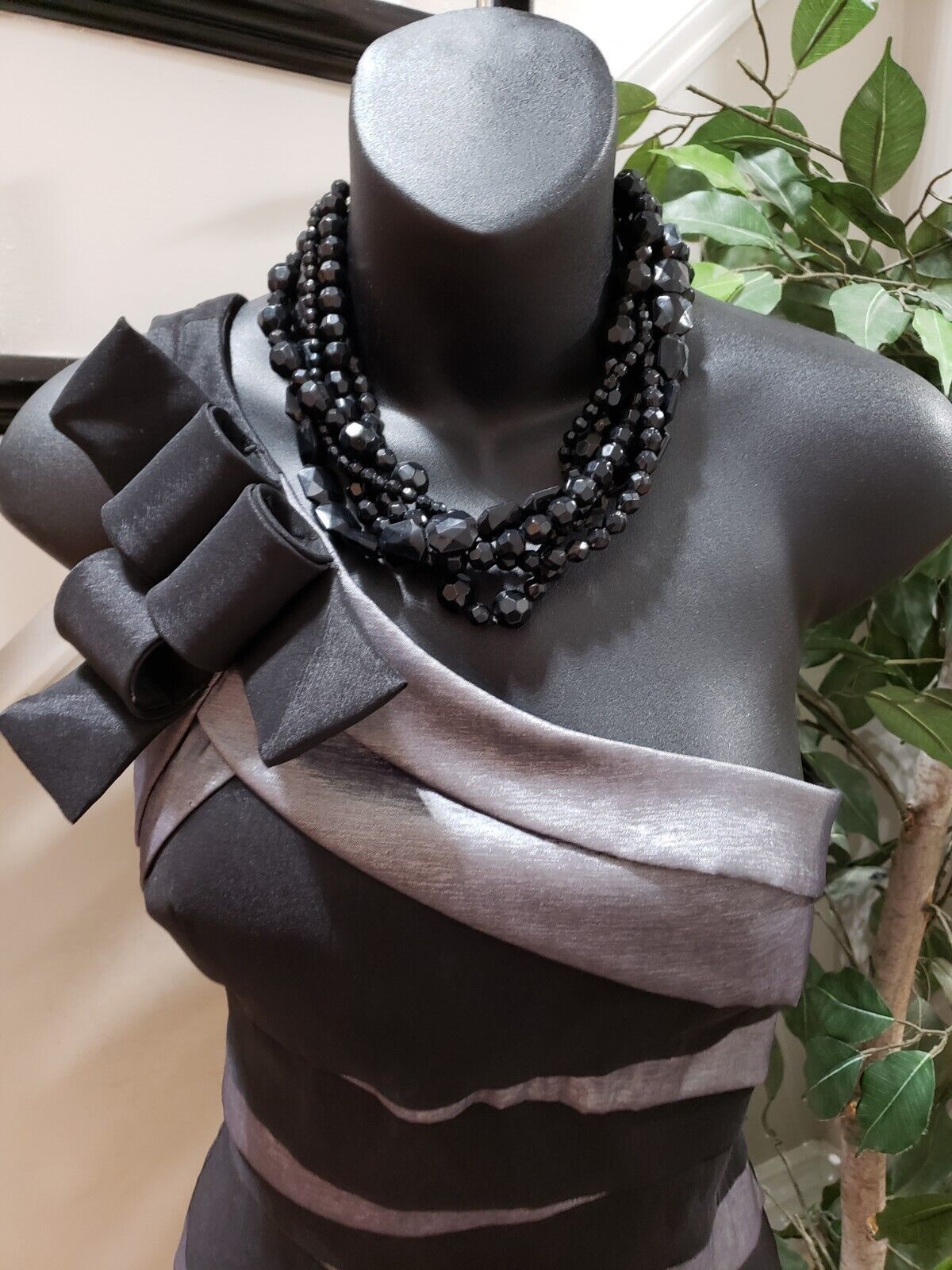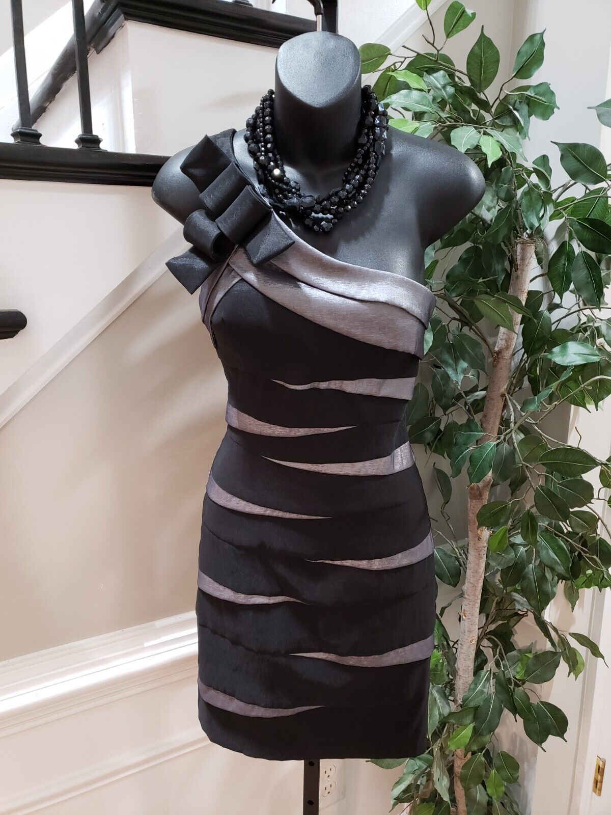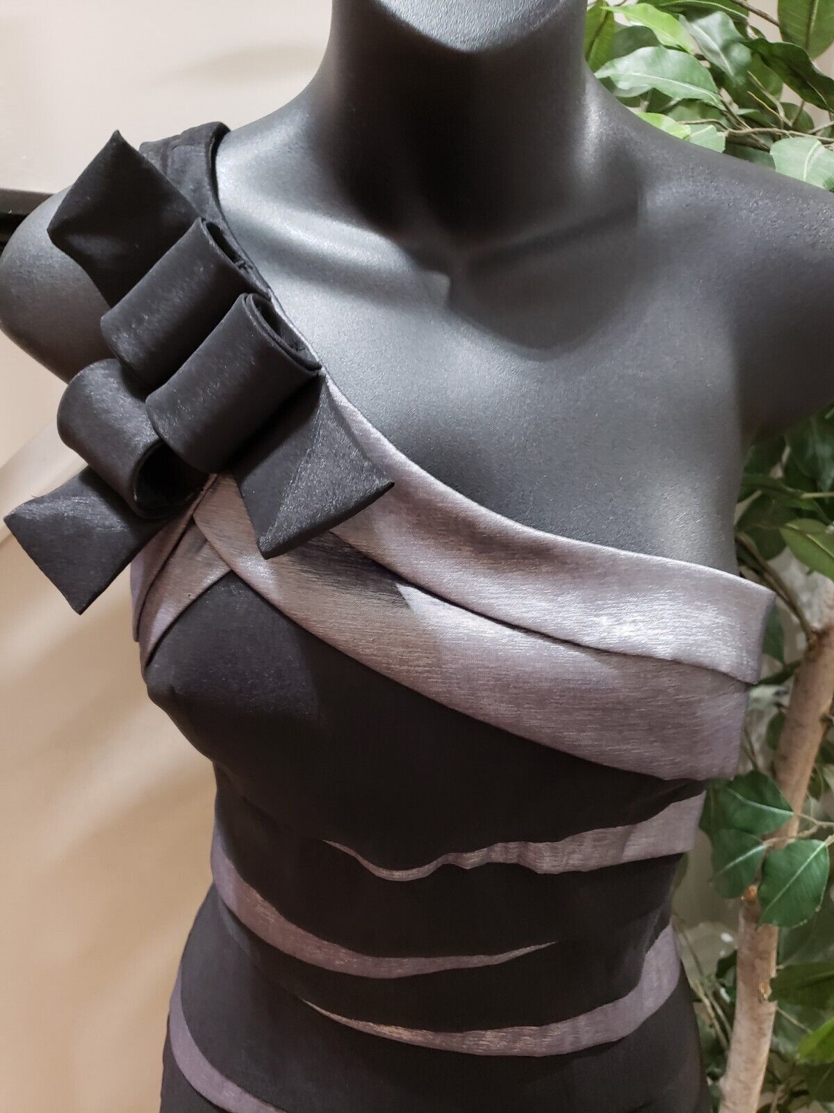Betsy & Adam Women's Gray & Black Polyester One Shoulder Off Knee Length Dress 4