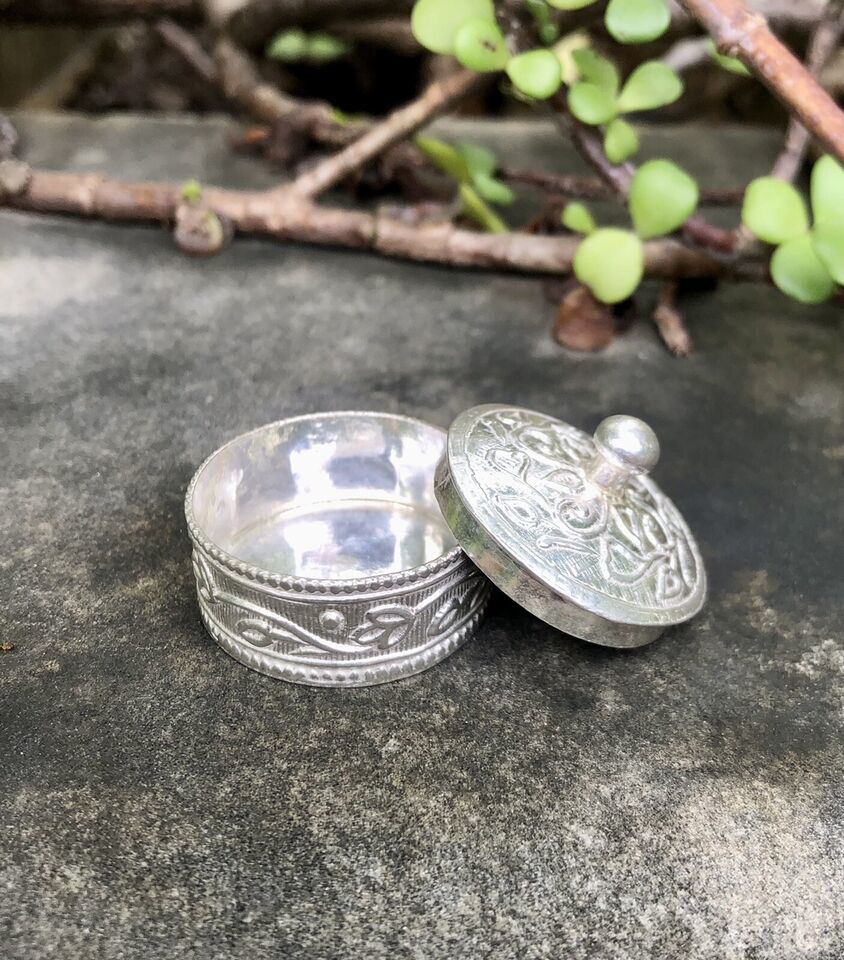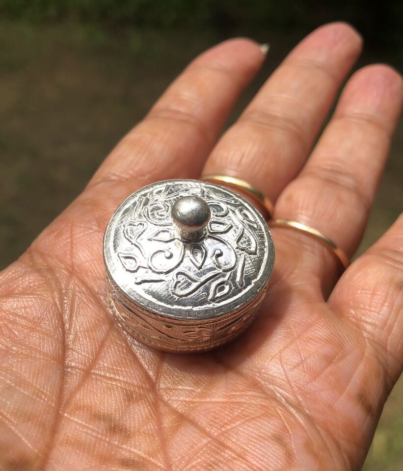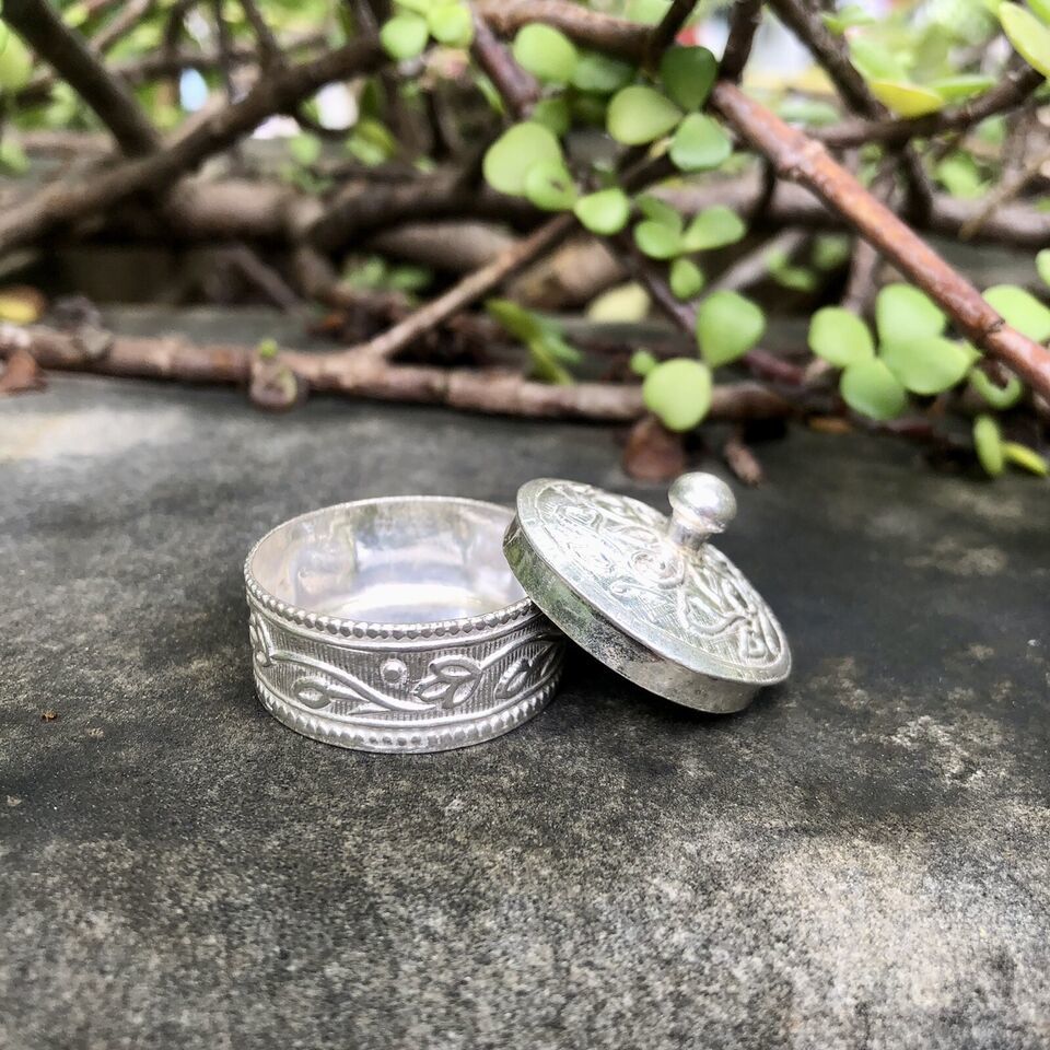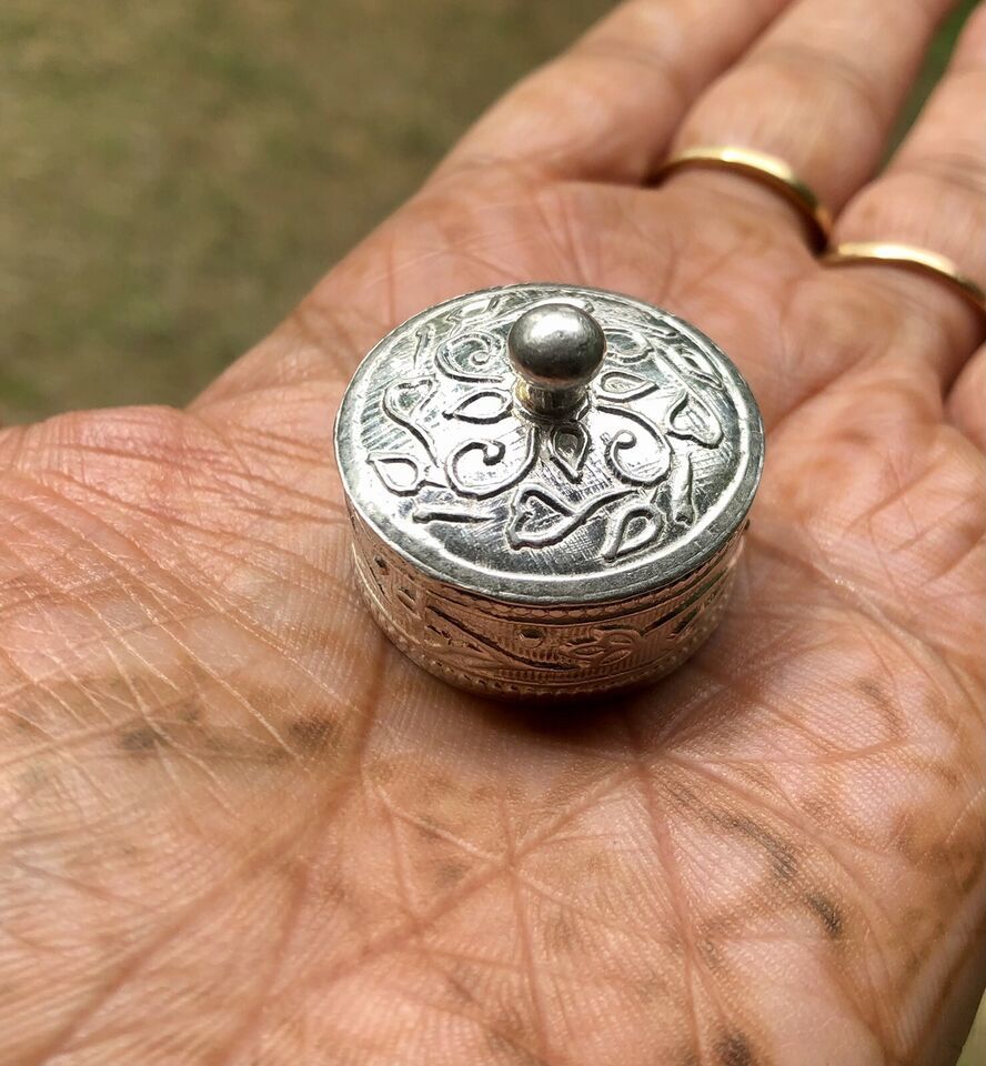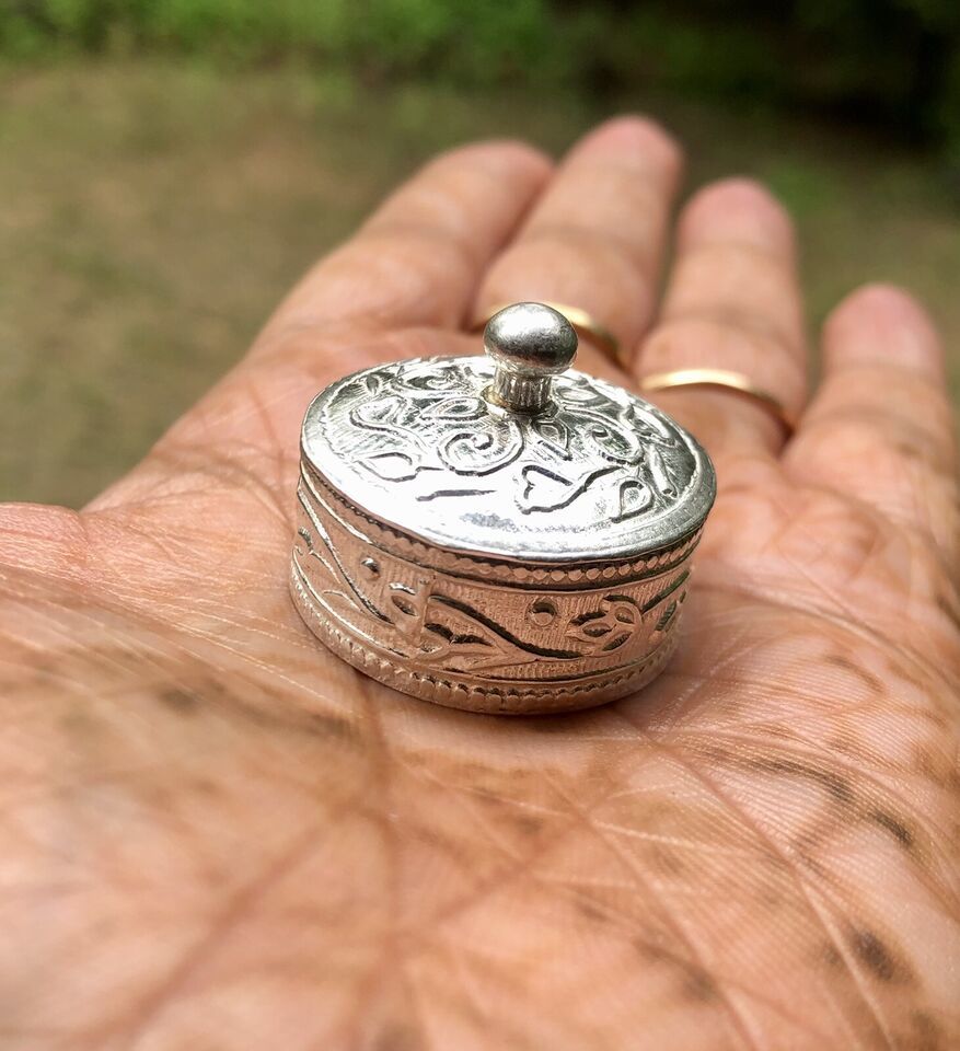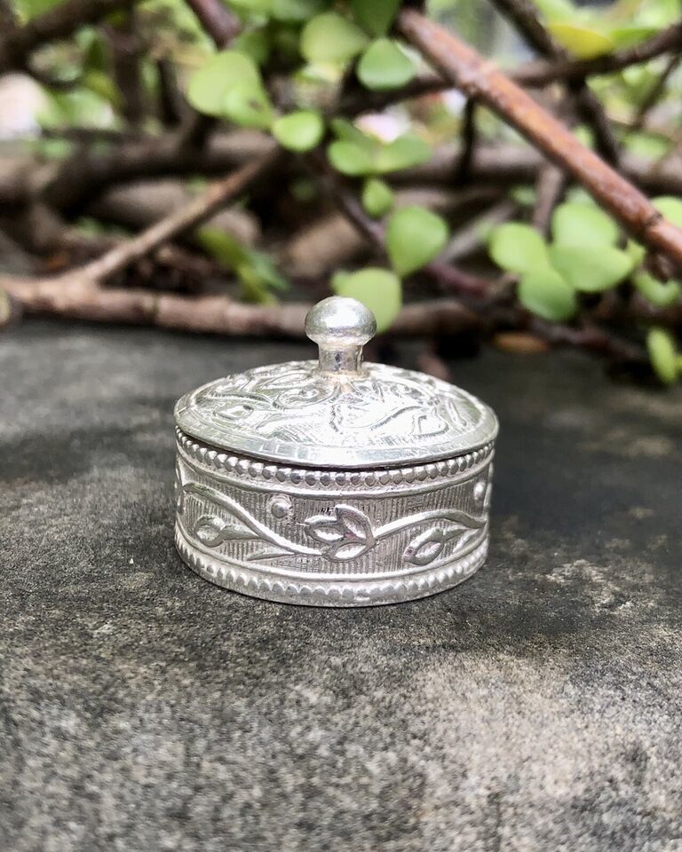 Portagioielli argento 925 fatto a mano Kajal barattolo rotondo 2,5 cm dia 12 gms