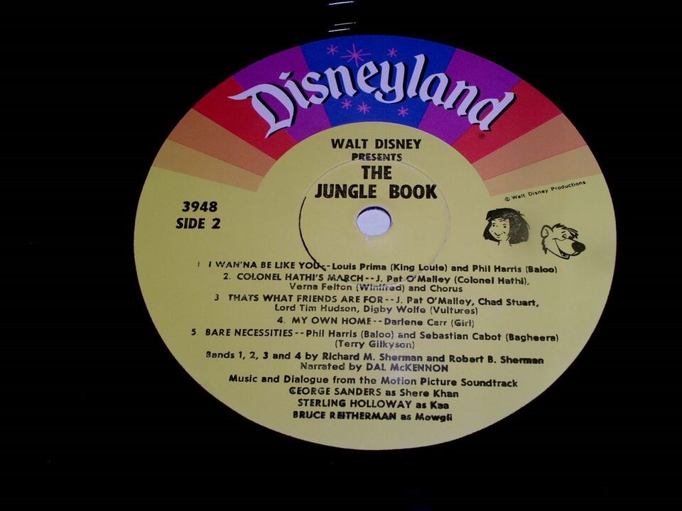 This is a vintage record album entitled, "Walt Disney Presents The Jungle Book". Record label Disneyland Storyteller 3948. Color Read-Along book is intact.