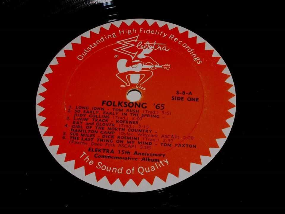 This is a vintage phonograph record entitled, "Folksong '65". Record label Elektra S-8. This is the Elektra Anniversary Commemorative Album. Artists: