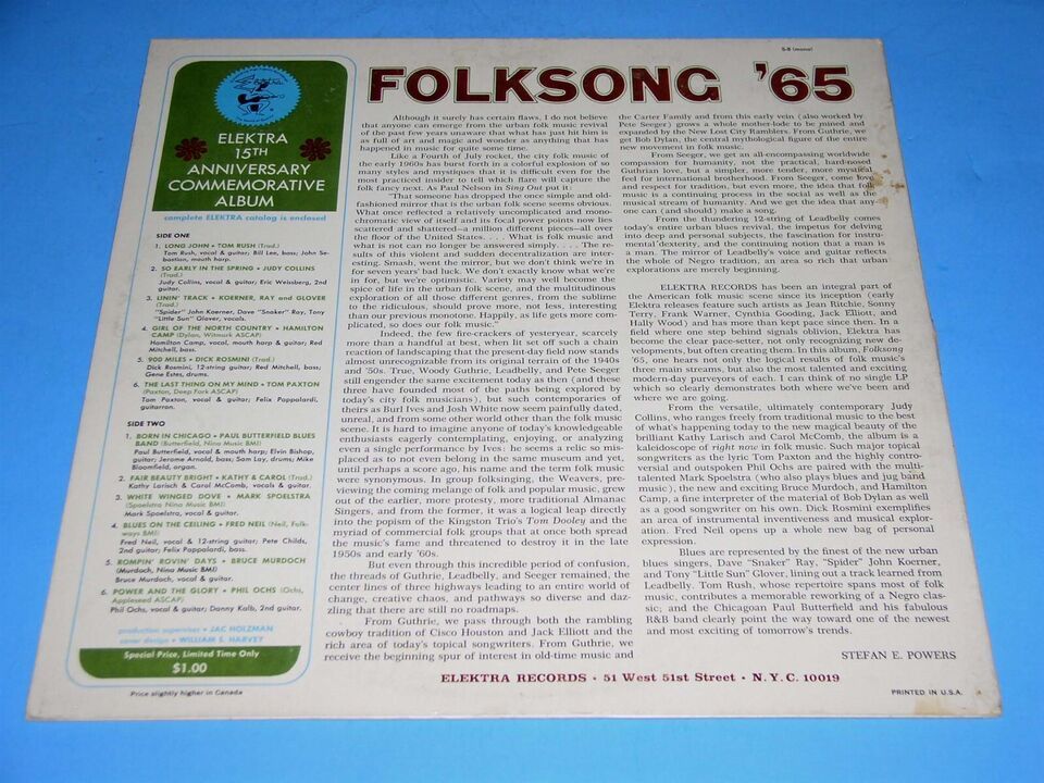 Folksong '65 Record Album Vinyl Paul Butterfield Tom Rush Phil Ochs Elektra Good