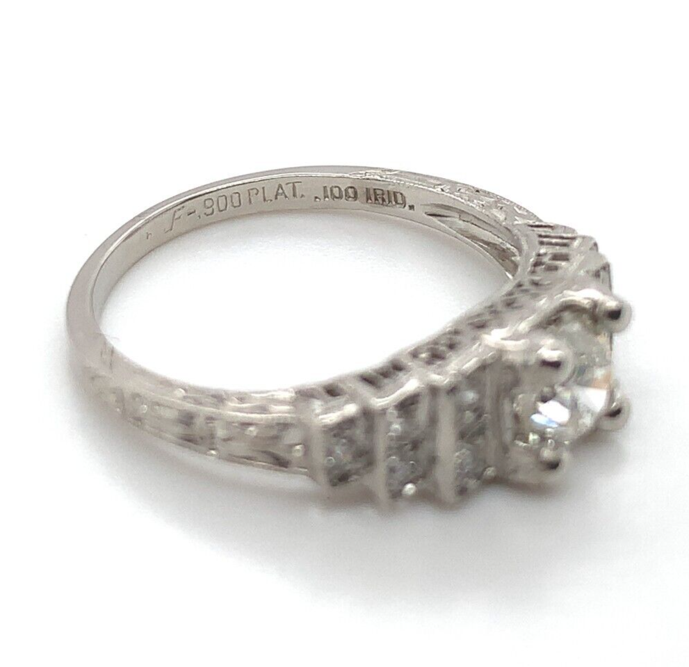 Platinum Art Deco .61ct Genuine Diamond Engagement Ring with GIA Report (#J6747)