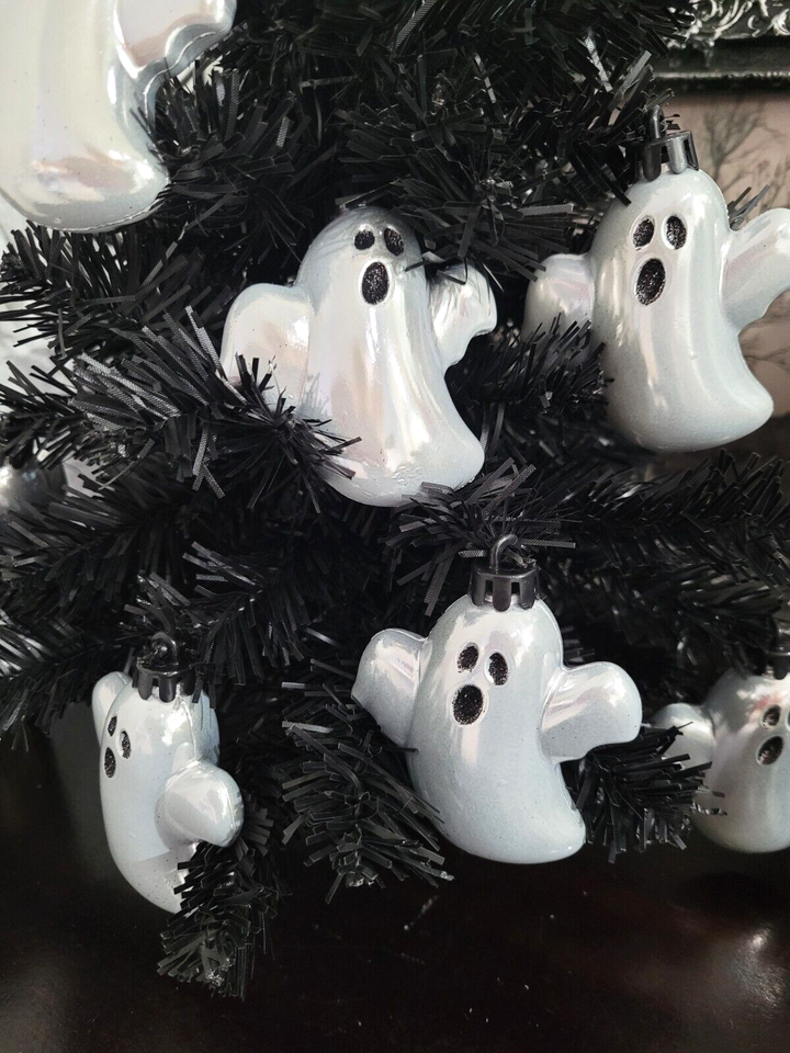 (8) Halloween Mini Ghost Plastic Ornaments 3" Tree Ornaments Decorations