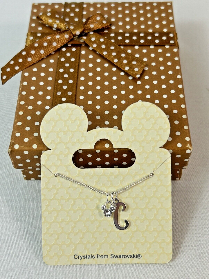 Up for sell is a brand new Disney Parks Mickey Mouse Swarovski Crystals Letter "C" Silver Color Necklace