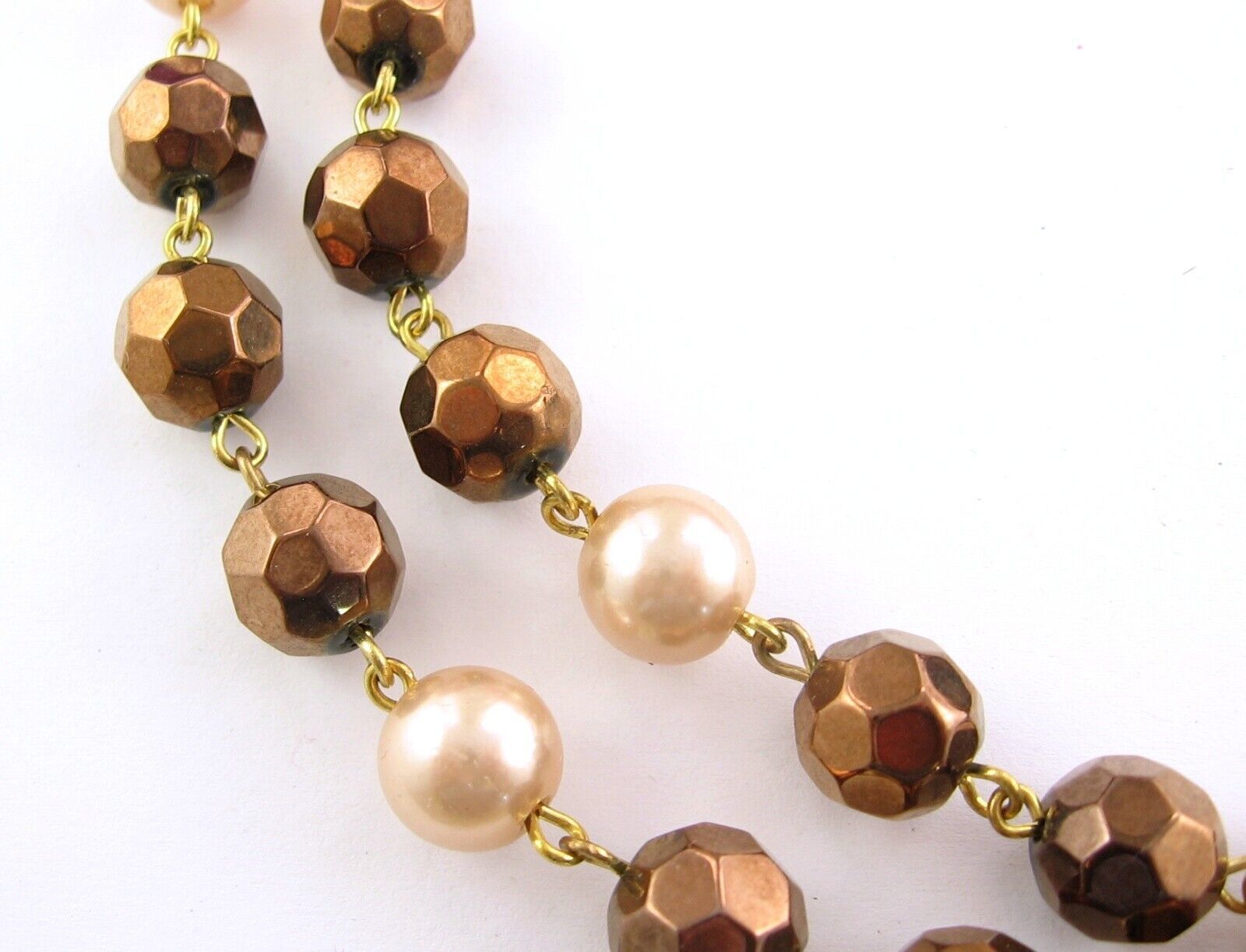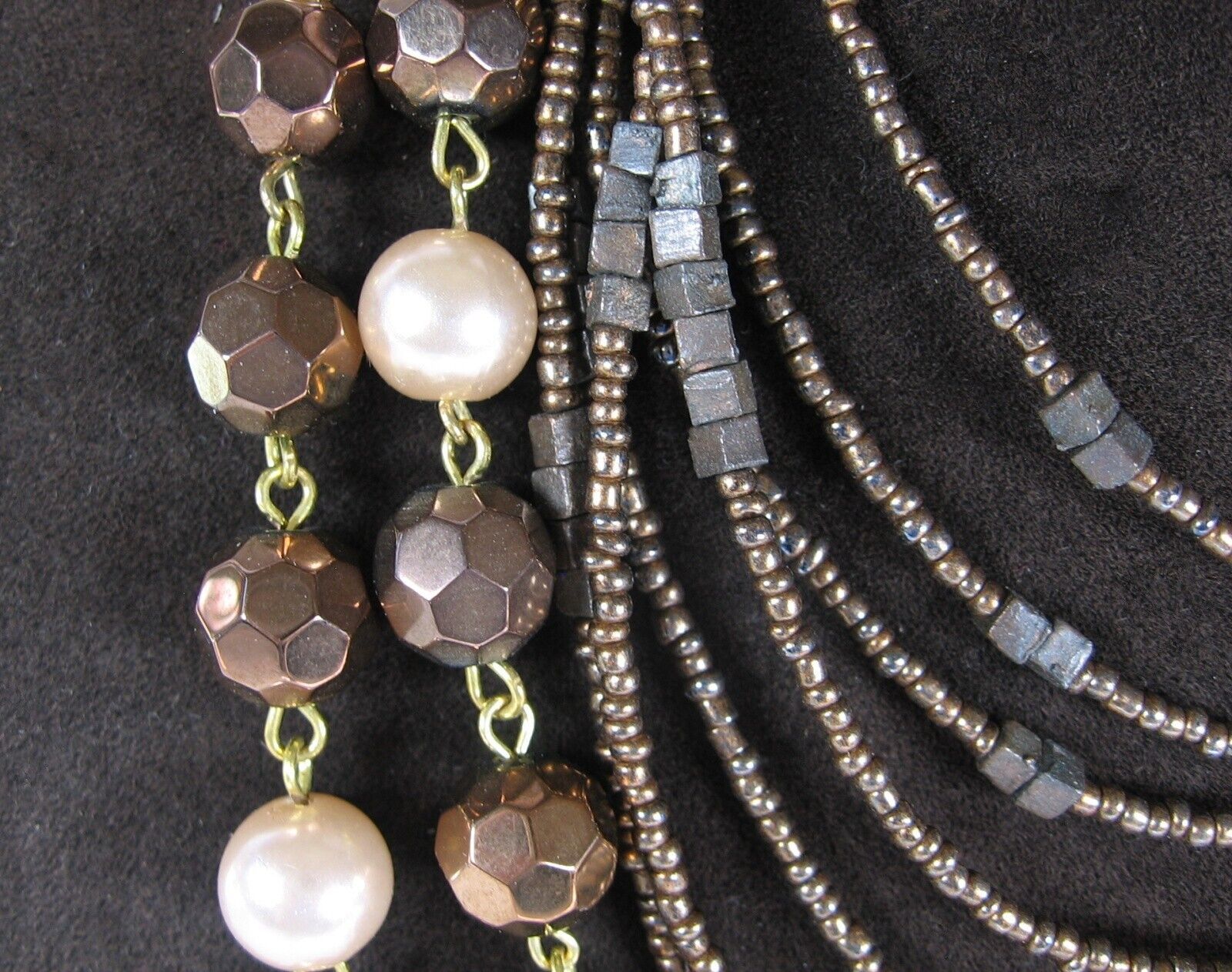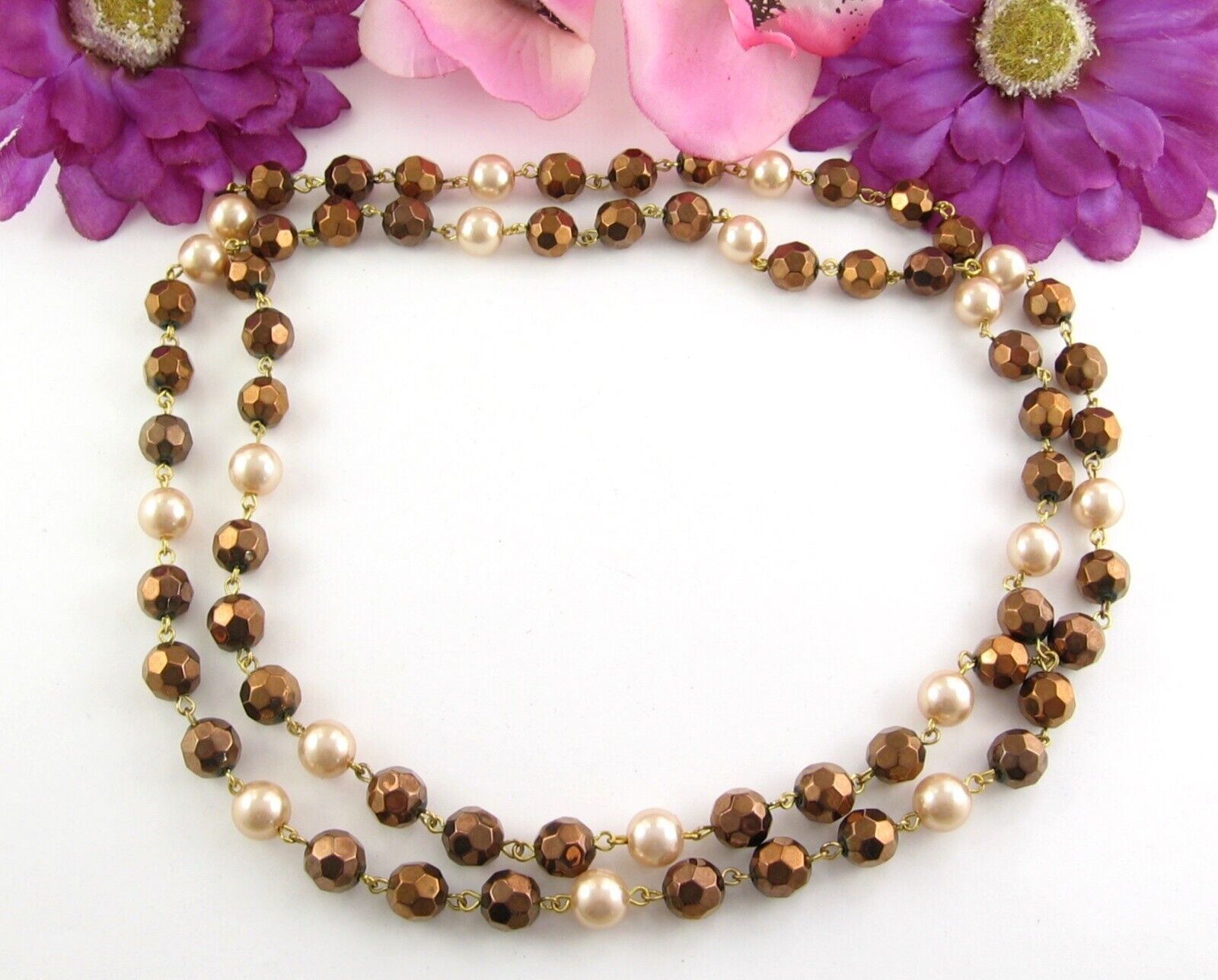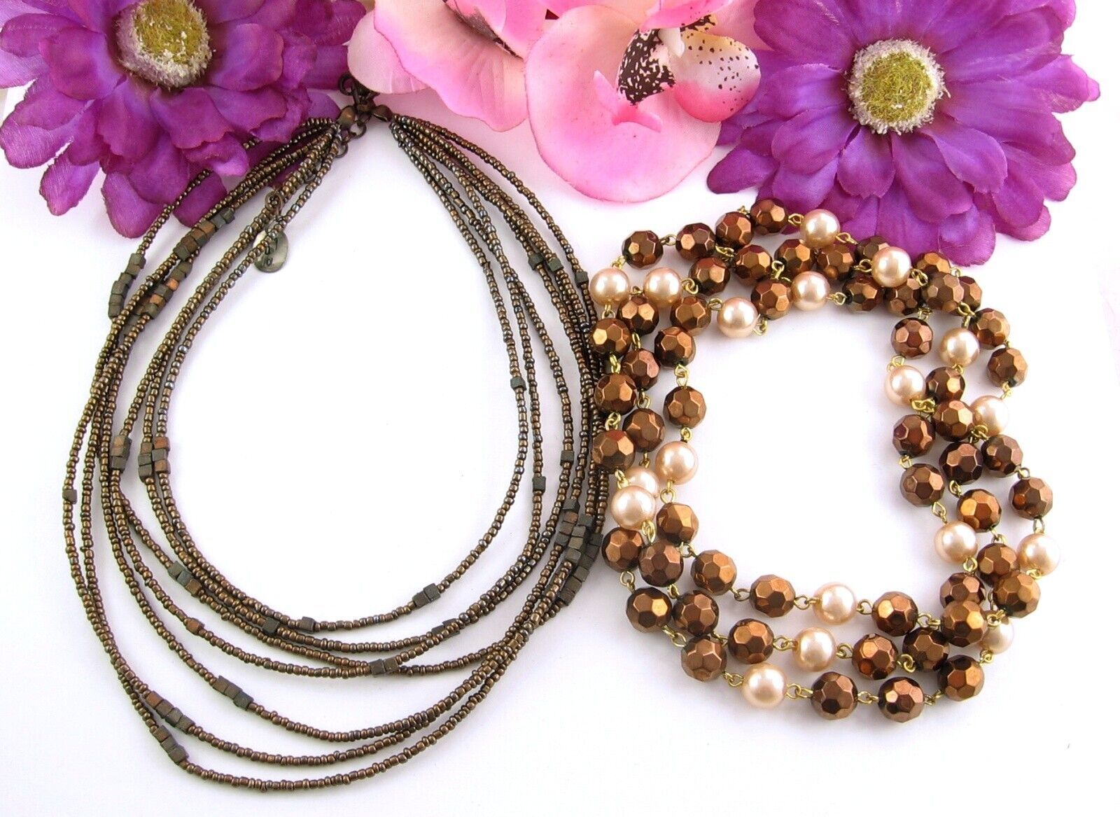 Set - ZAD 7 Strand COPPERTONE Seedbead NECKLACE Vintage GLASS BEADED Faux Pearl