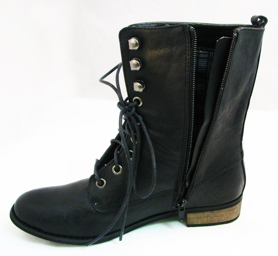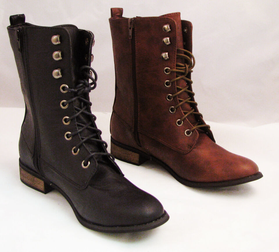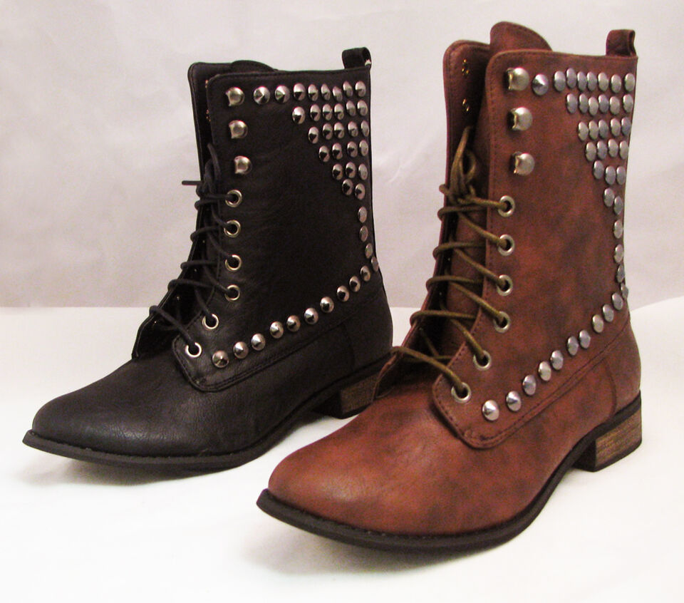 New with Box Women?s Studded Boots Military Combat Fashion Lace Up Spike Zipper Shoes, Black and Coffee, Sizes: 5 - 10