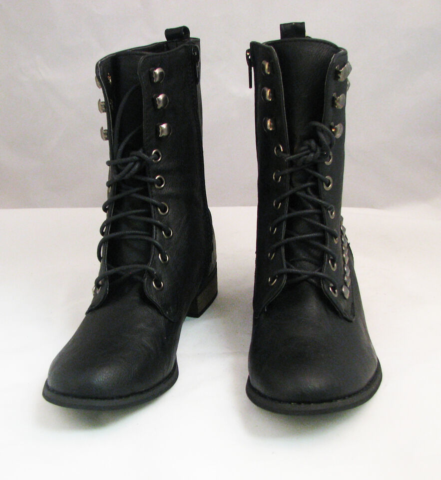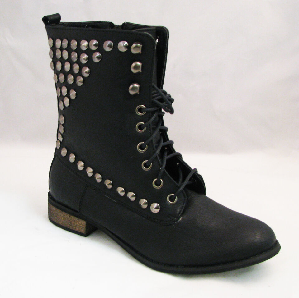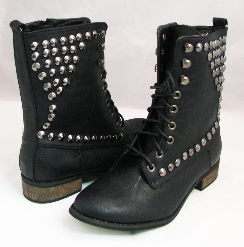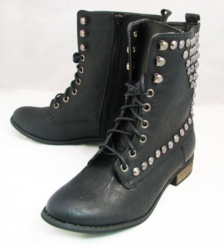 Women’s Studded Boots Military Combat Fashion Lace Up Spike Zipper Shoes, Sizes