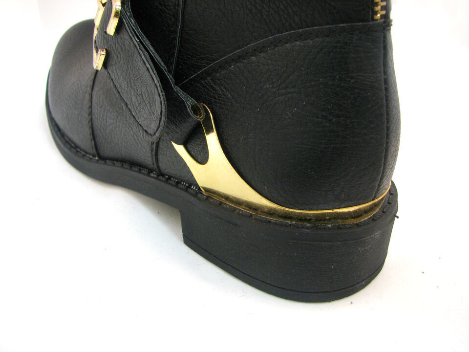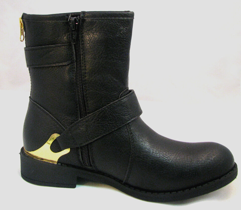 PU Upper, Side and Back Zipper, Gold Color Buckle