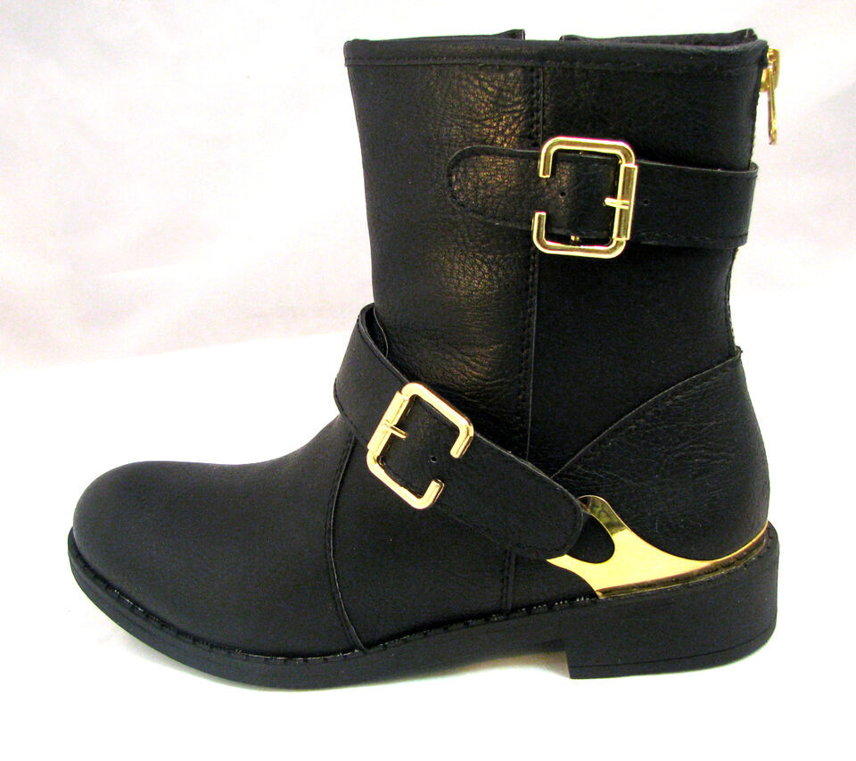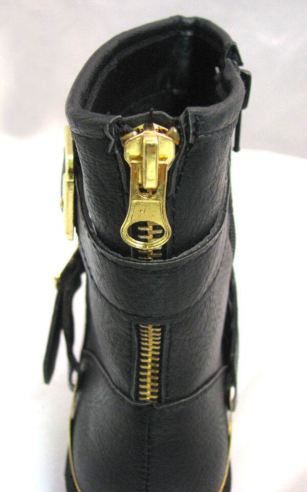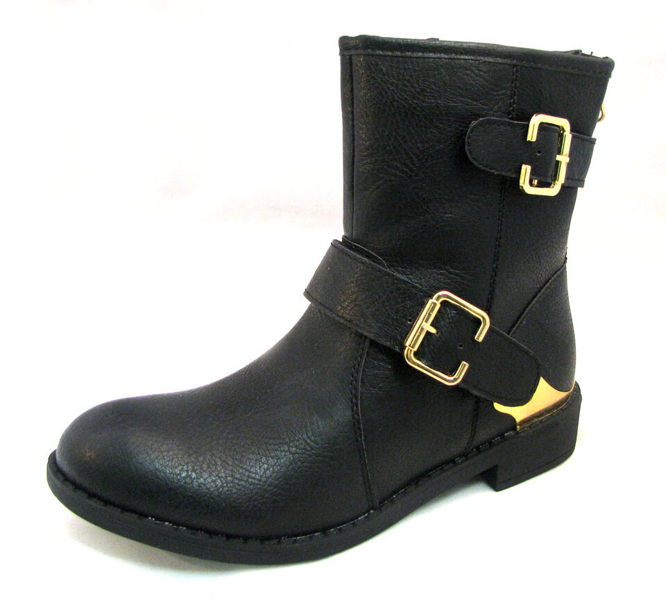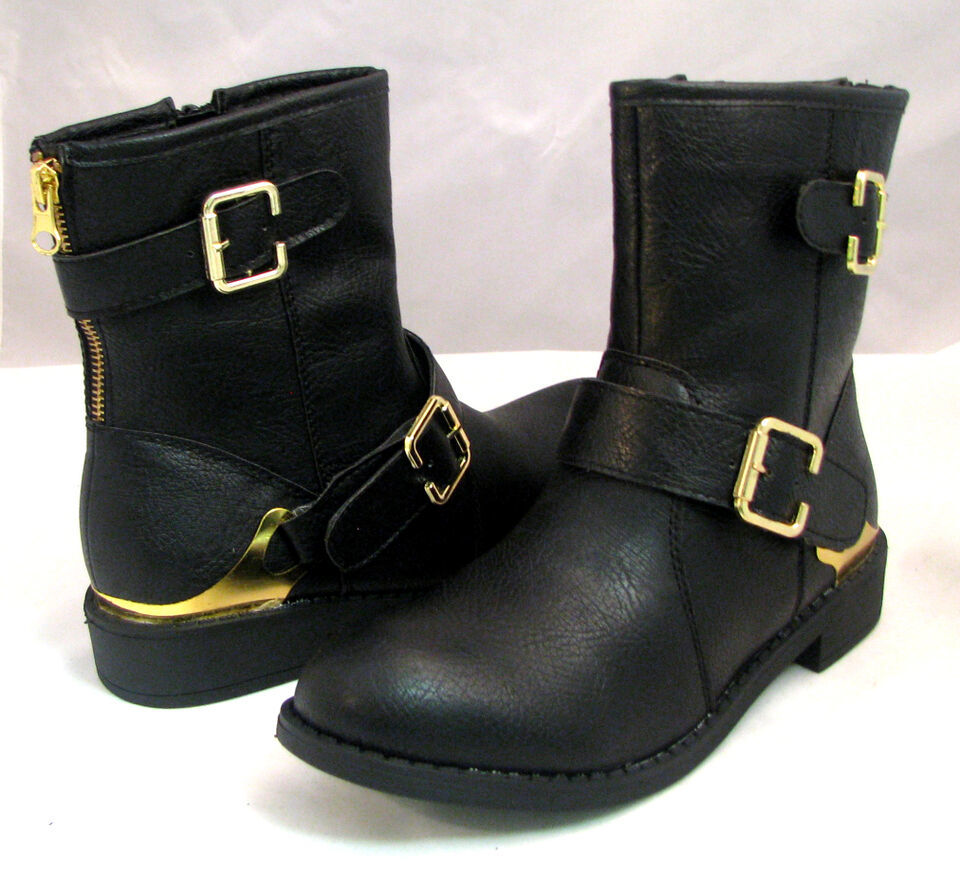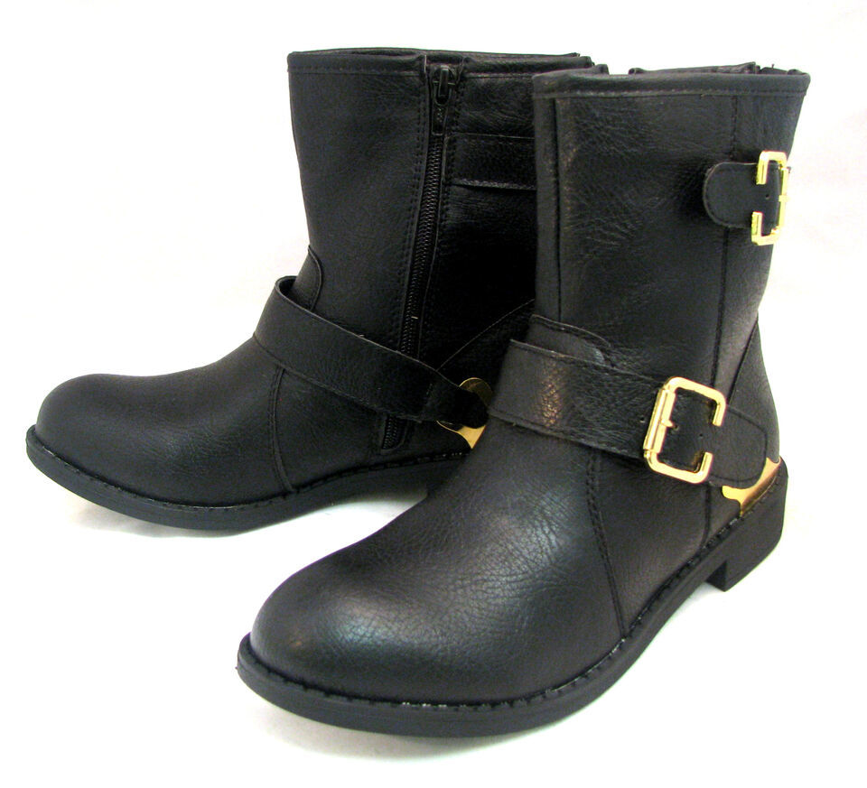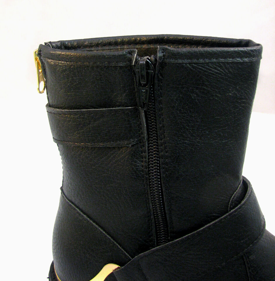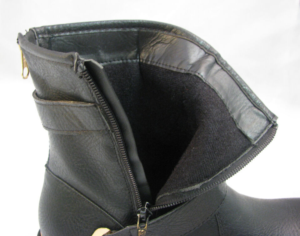 New with Box Women's Boots Faux Leather Buckle Strap Zipper Ankle Fashion Shoes Biker, Sizes: 6 - 10