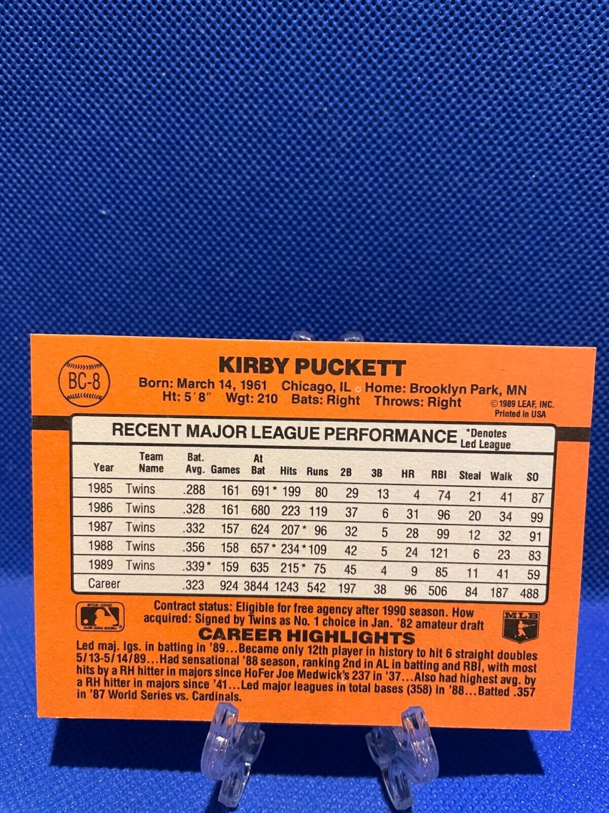 Kirby Puckett BC-8 1990 Donruss Baseball Card