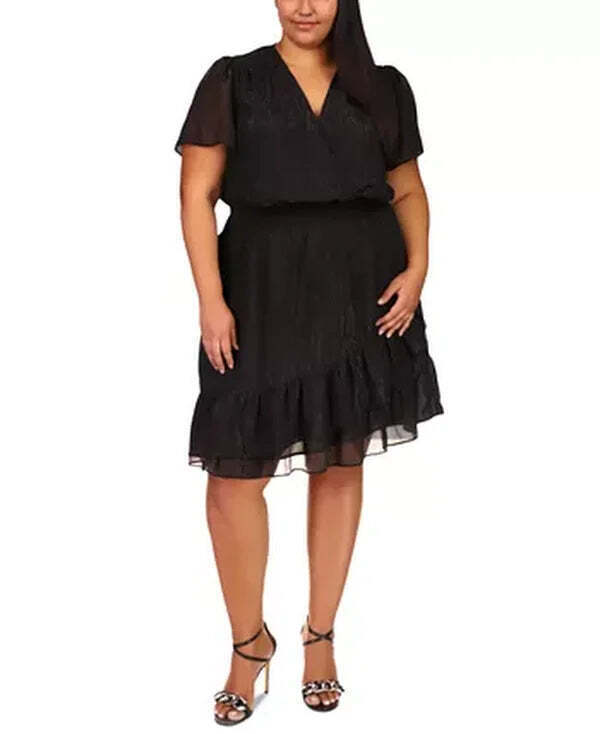 Item Notes:Party season is here. Own the room in this shimmery plus-size dress from Michael Michael Kors, featuring a flattering faux-wrap design. Approx. 43-1/2 long from center back neck to hem Surplice neckline Pullover style Short, sheer flutter sleeves Metallic detailing; smocked waistband; tiered and ruffled asymmetrical hem Lined Shell: polyester; lining: polyester (55% recycled polyester) Machine washable Imported Box N12 (XS/Black-1)Listed: Martha Russel Due to variances in monitor color, and lighting, the color of some items may differ slightly from the photographsAbout us:Vanessa Jane is a family-owned business based in Indiana. We sell only authentic merchandise from brand new to used, and list new inventory daily. Make sure to put us on your favorites to see what's new each day! We source all of our inventory from reputable sales channels, including: Macy's Amazon Walmart Home Depot Office Depot Lowes Build.com And many more Box N12 (2X/Black)Box N12 (XS/Black)Listing SKU: VJ6902812115029Relisted: by James Cushing