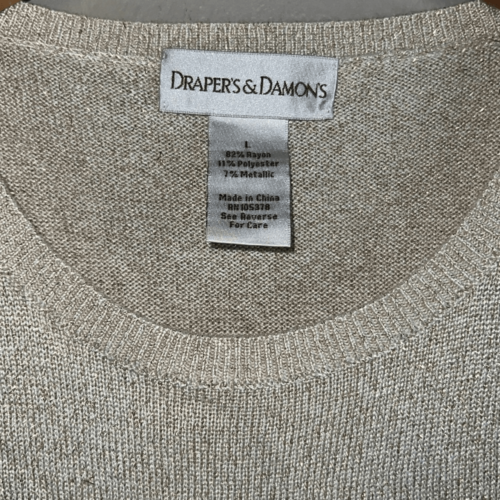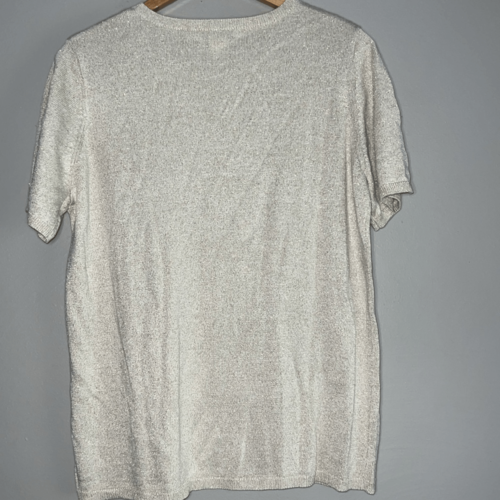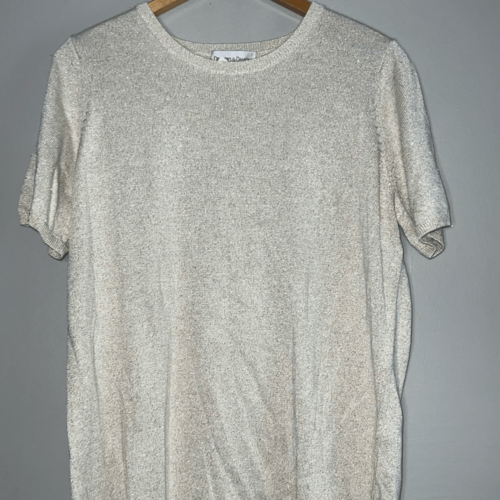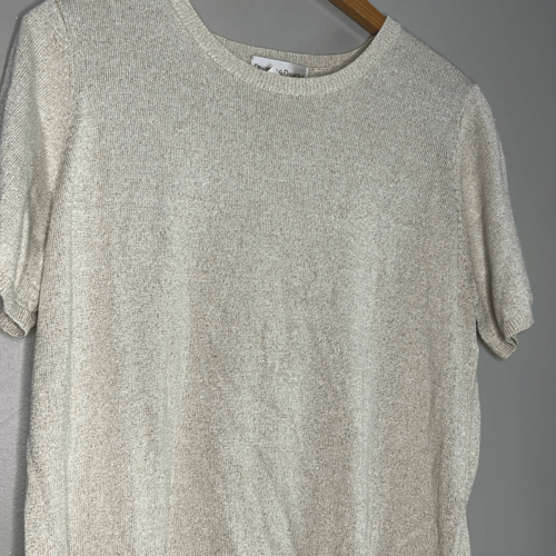 Draper’s & Damon’s cream and gold metallic short sleeve sweater