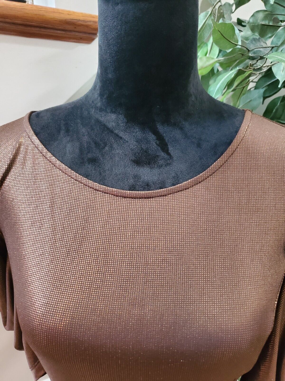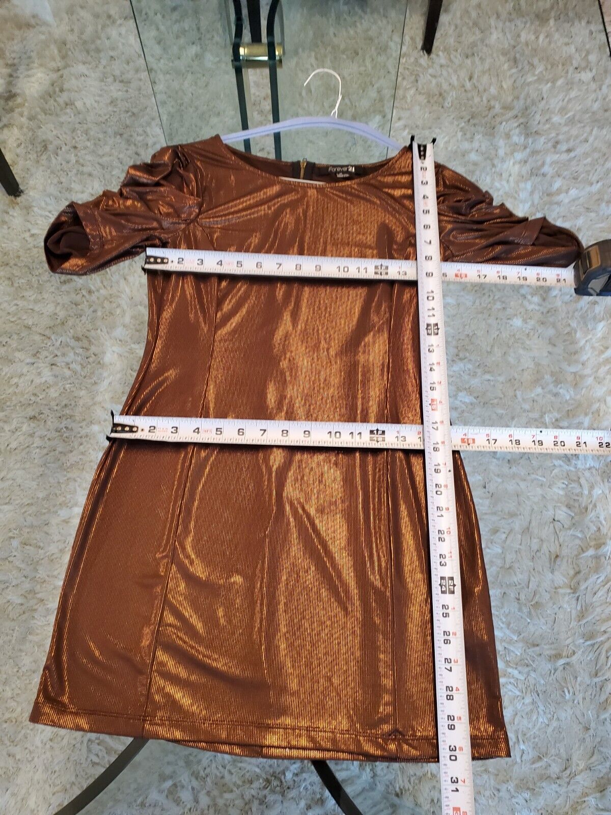 Forever 21 Women's Brown Polyester Round Neck Short Sleeve Knee Length Dress L