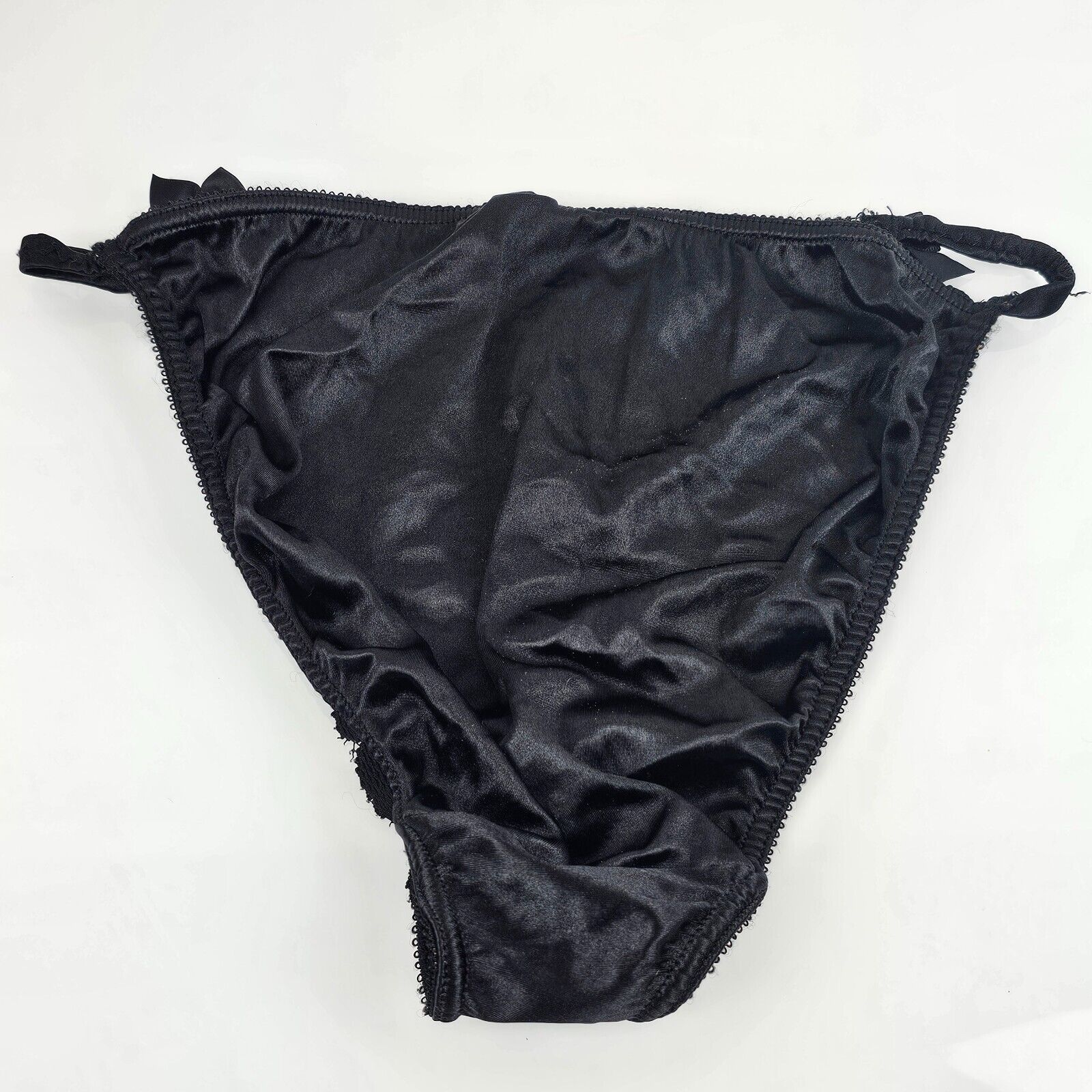 Vintage Victoria's Secret Second Skin Lace Bows String Bikini Panties L Large