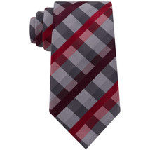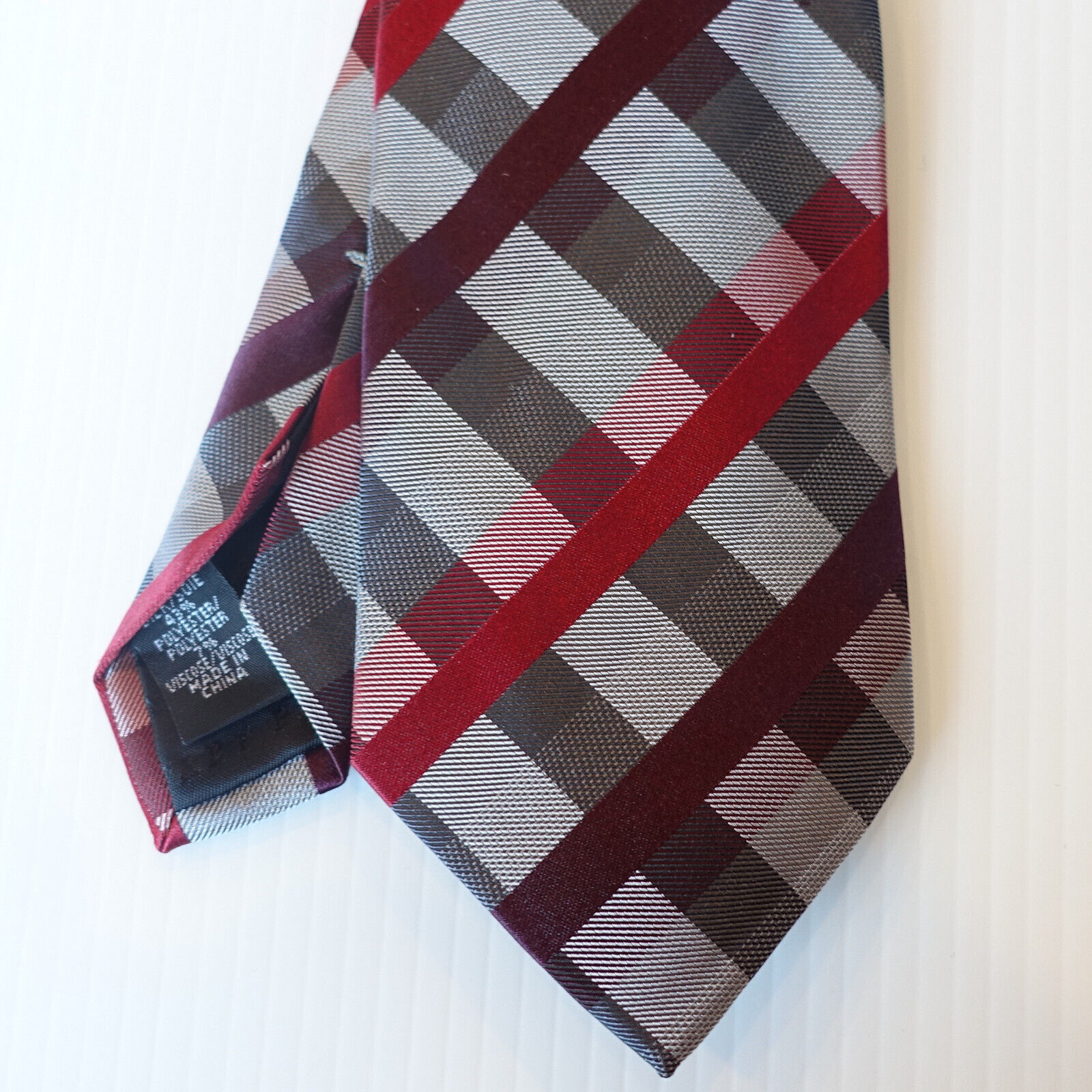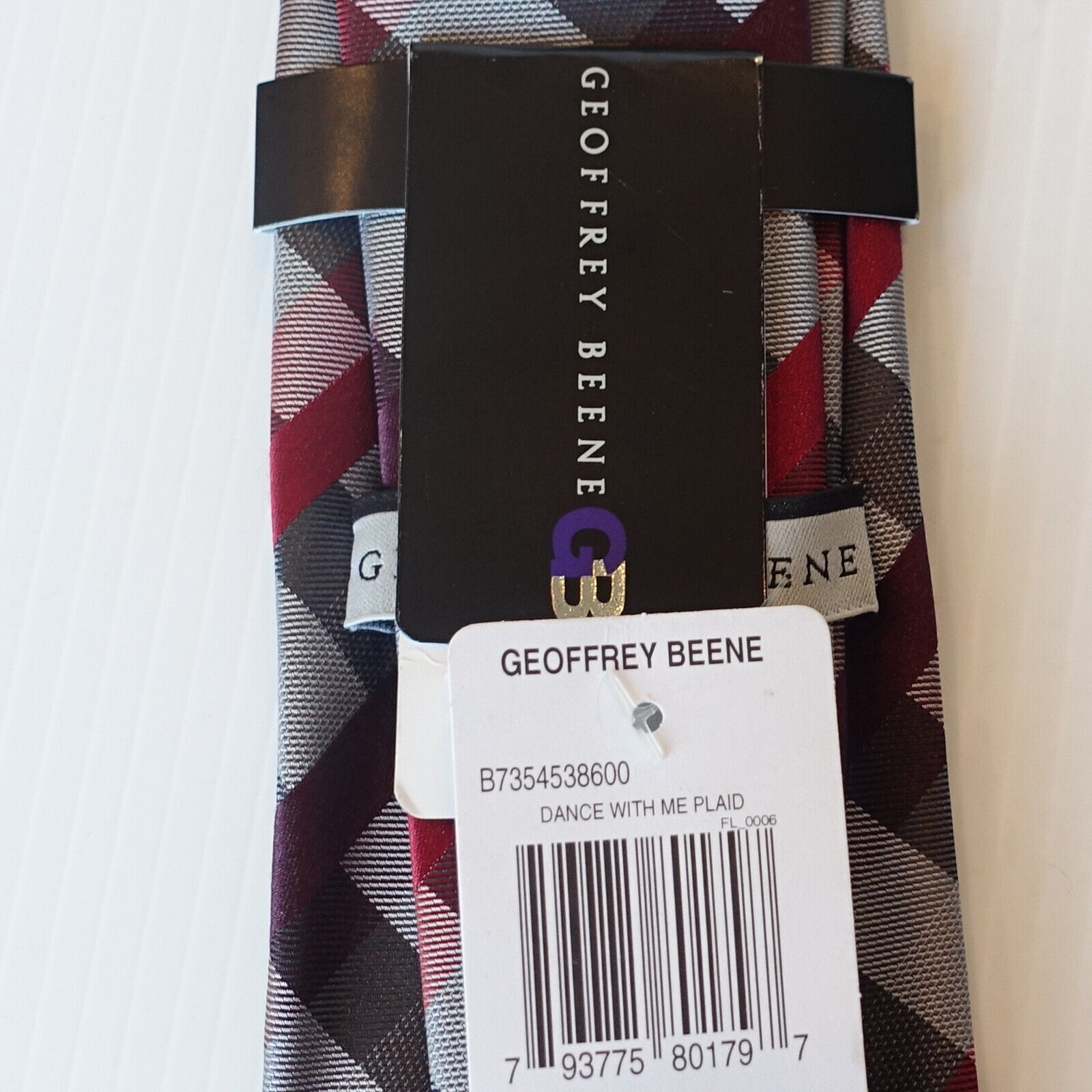 GEOFFREY BEENE Gray Red Dance With Me Plaid Silk Polyester Blend Classic Tie