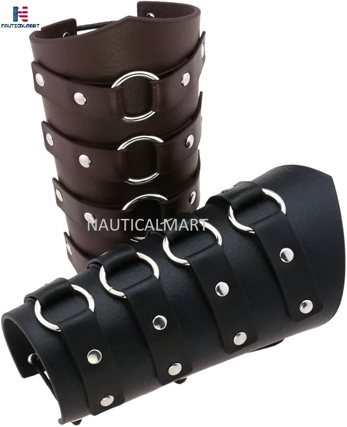 Unisex Gauntlet Wristband Leather Punk Wide Wrap Bracer Arm Armor Cuff for Men Women