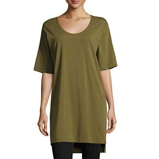 Details: Cut for an effortless fit, a scoop-neck tunic is upgraded in supersoft jersey spun from sustainably produced organic cotton with just the right amount of stretch. Scooped neck Elbow-length sleeves Condition: New with tags.