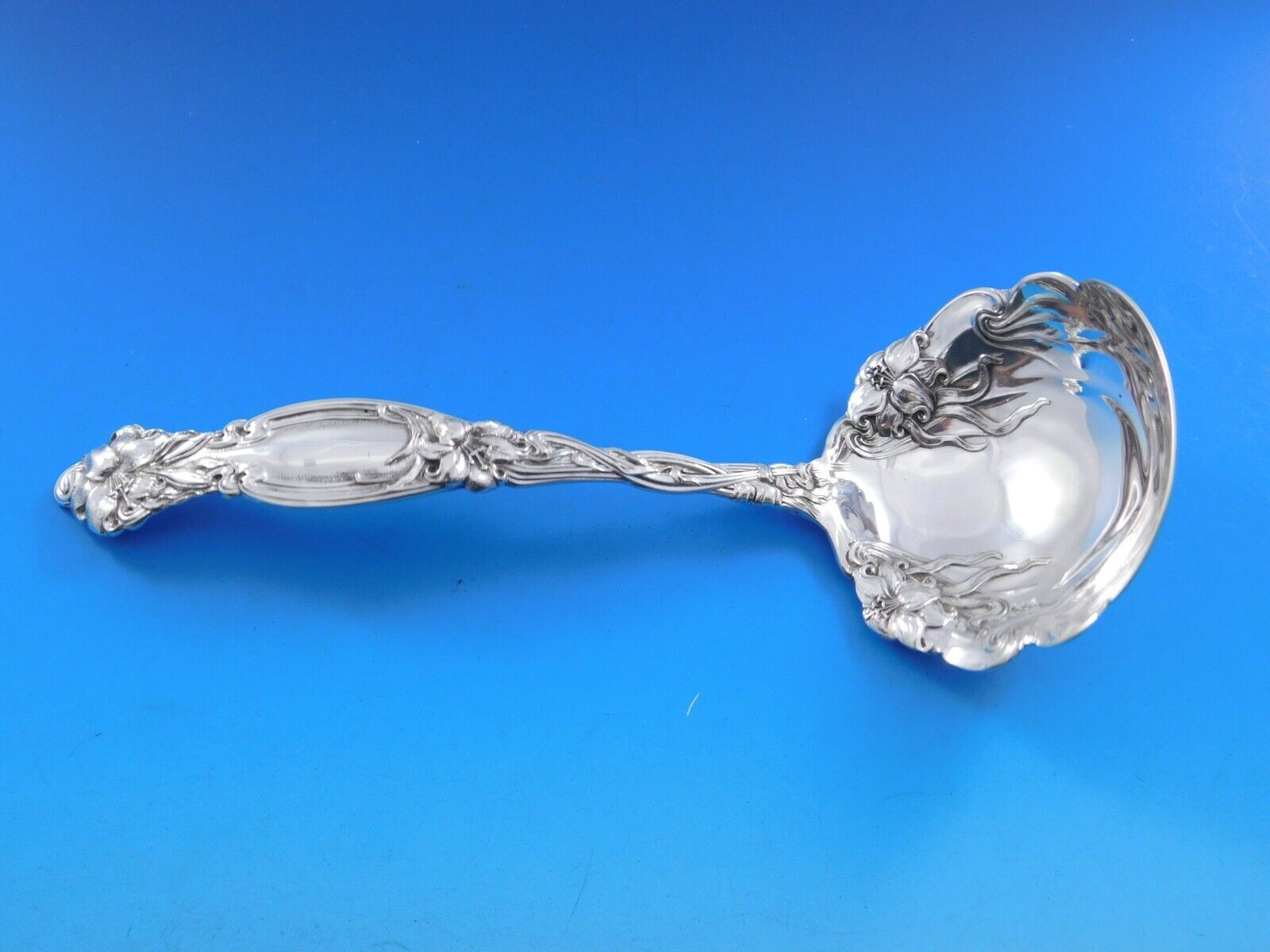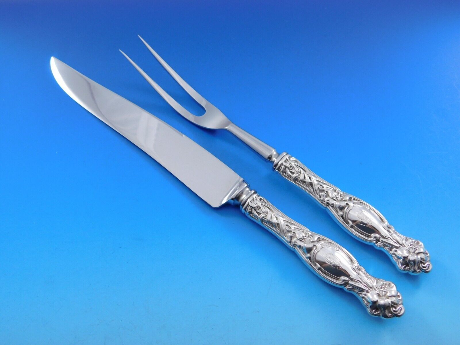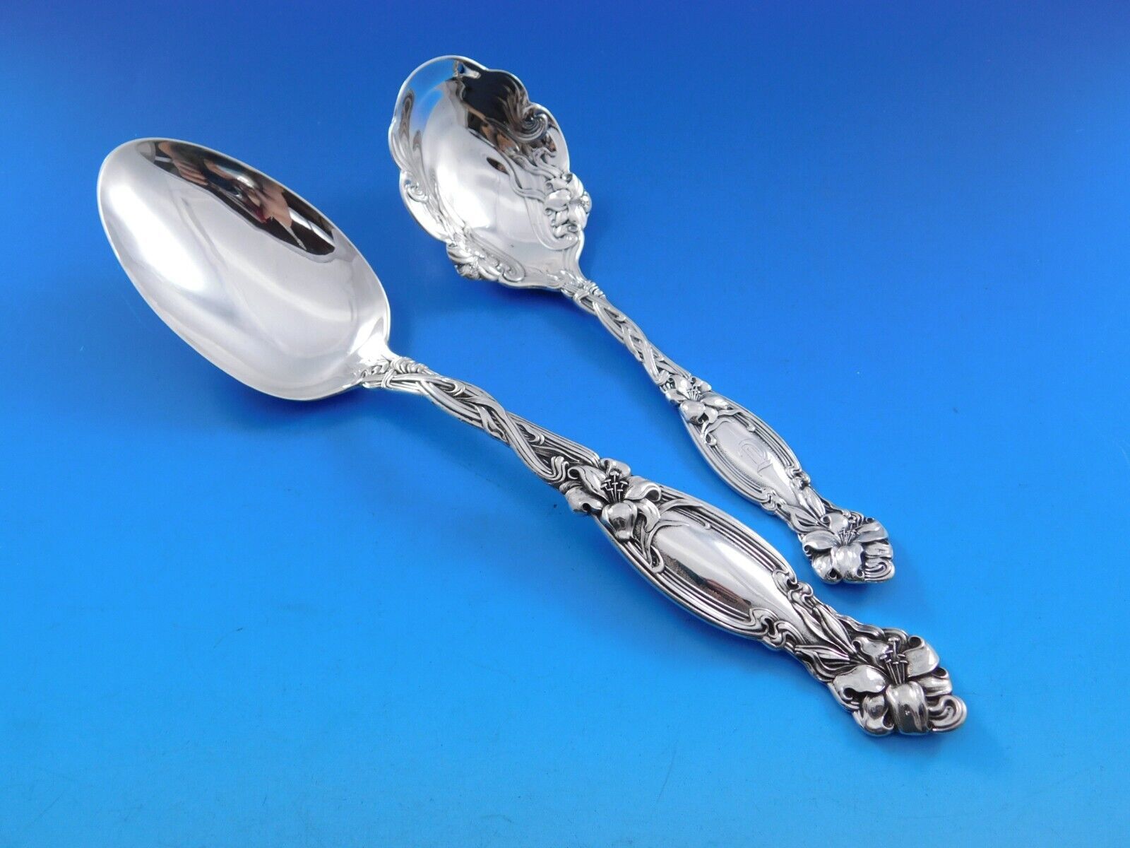 Frontenac by International sterling silver Flatware set - 55 pieces. This pattern was introduced in the year 1903 and features beautiful Art Nouveau lily flowers with leaf detailing that flows down the handle. This set includes: