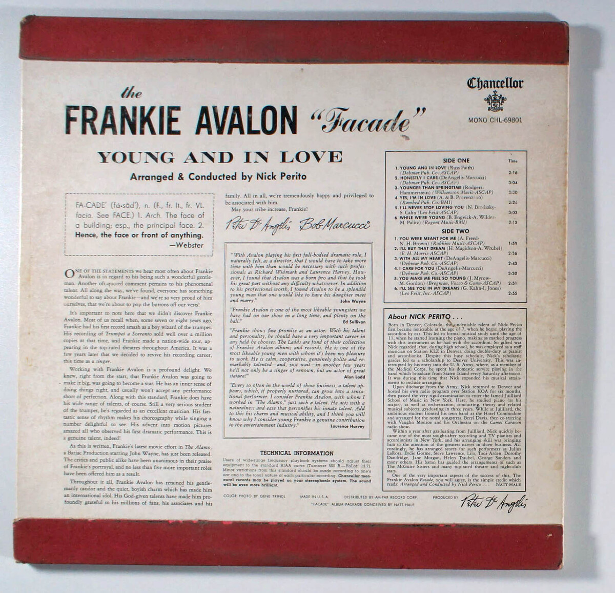 Frankie Avalon - Young and in Love (1960) Vinyl LP Facade, Nick Perito