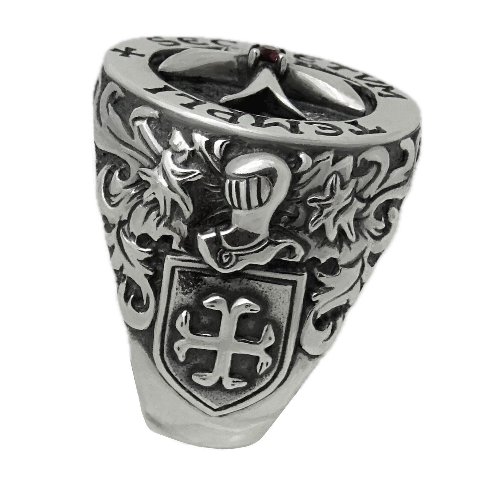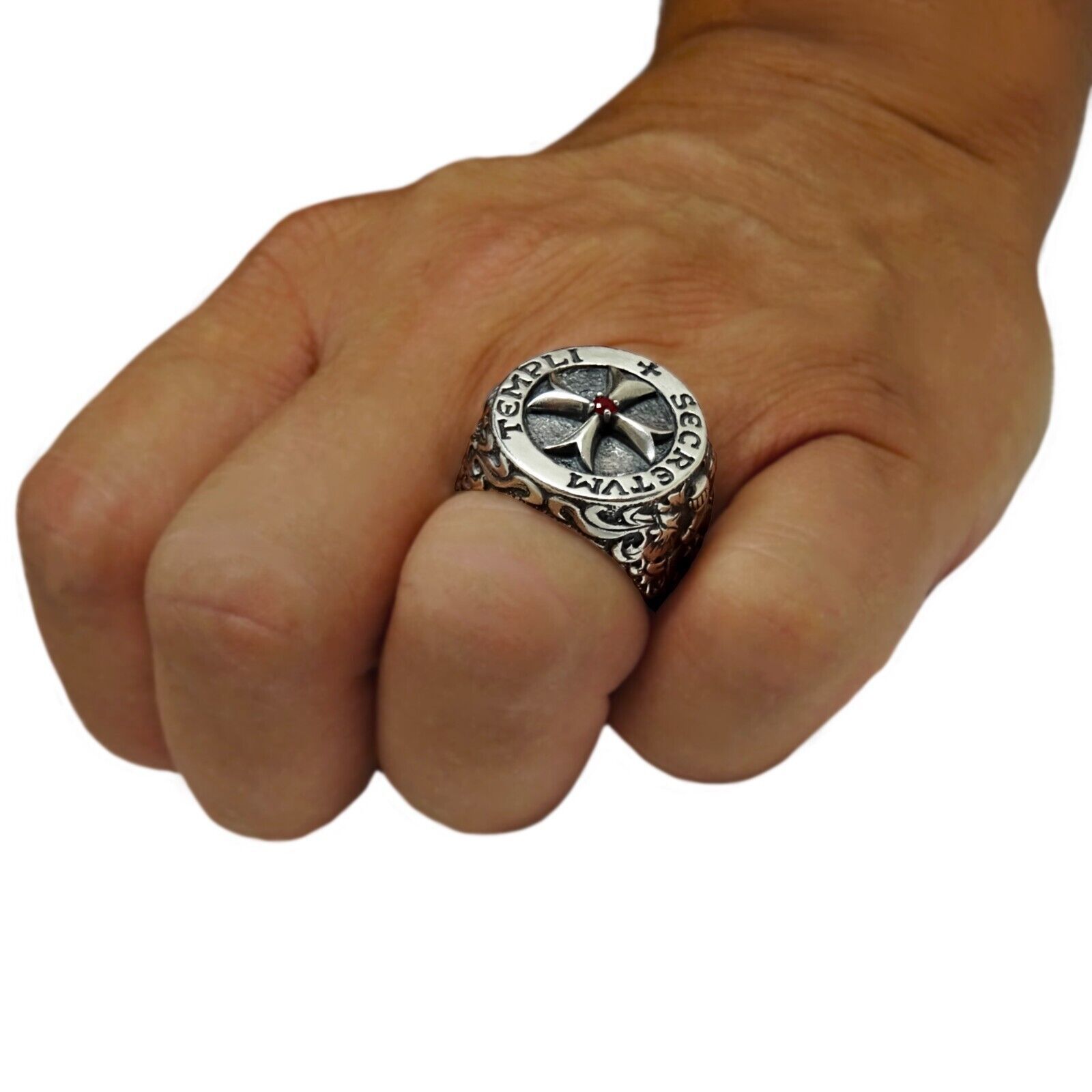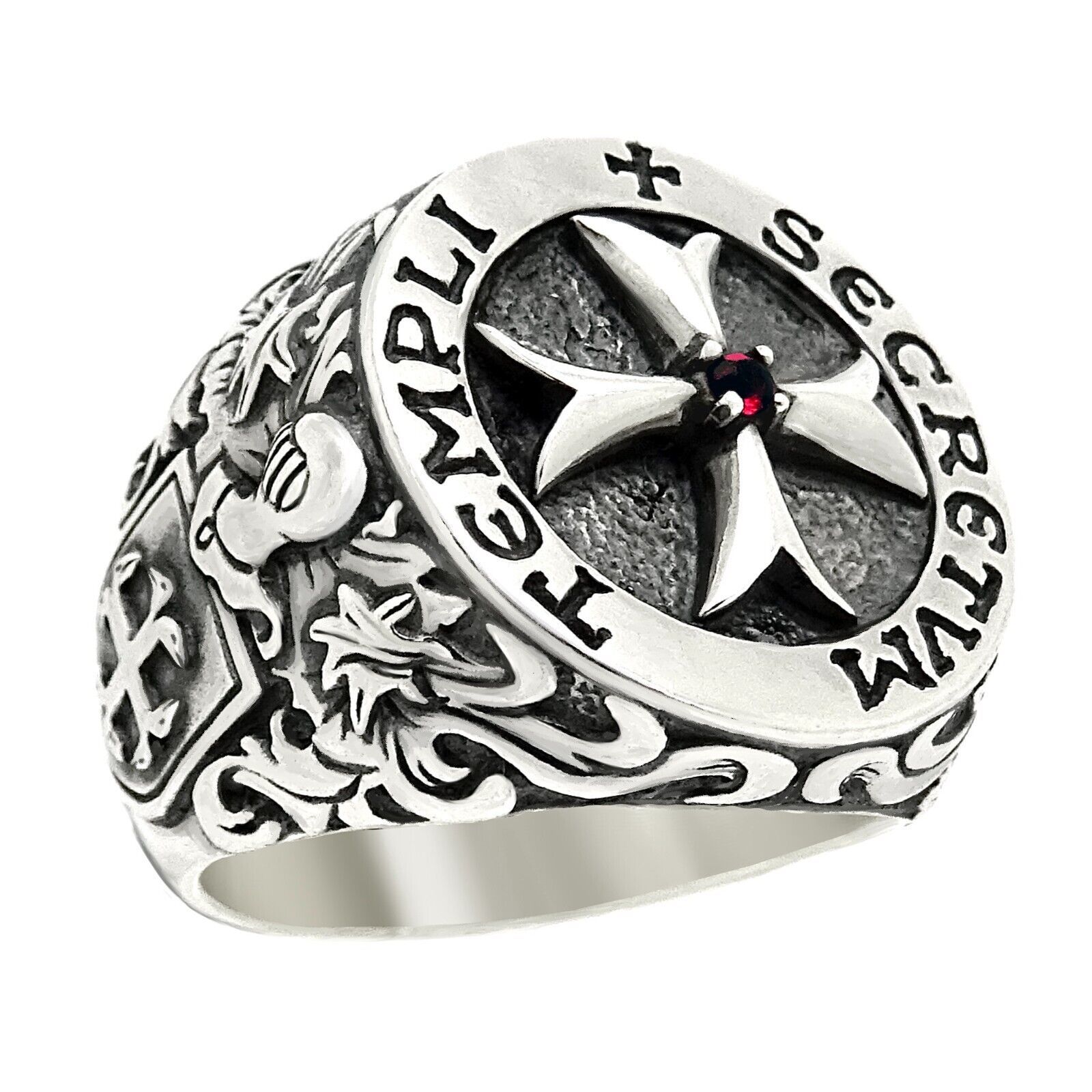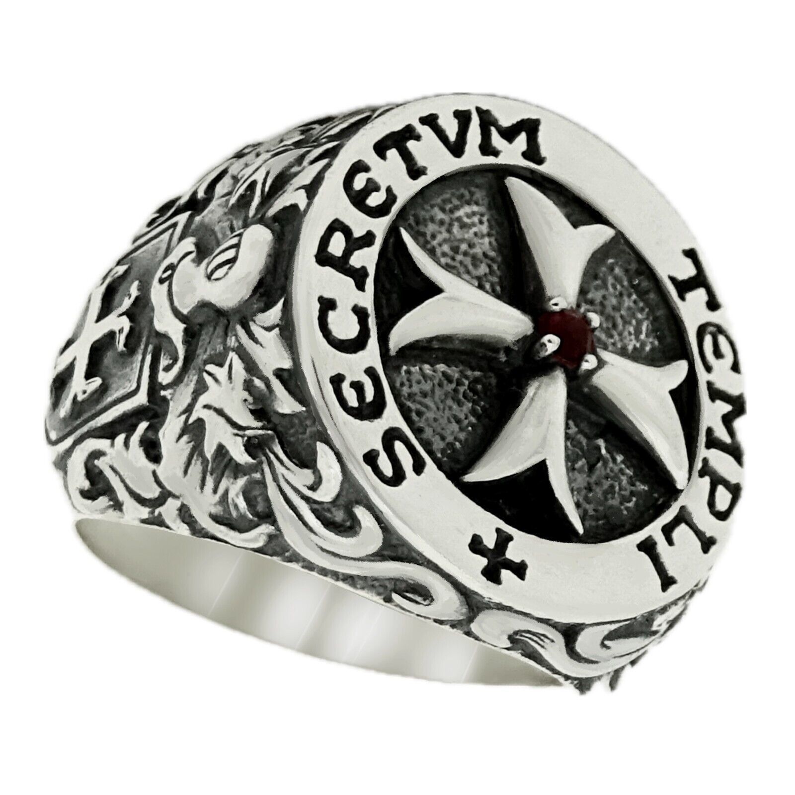 Knights Templar Crusader Masonic Silver 925 Men's Ring Maltese Cross Shield