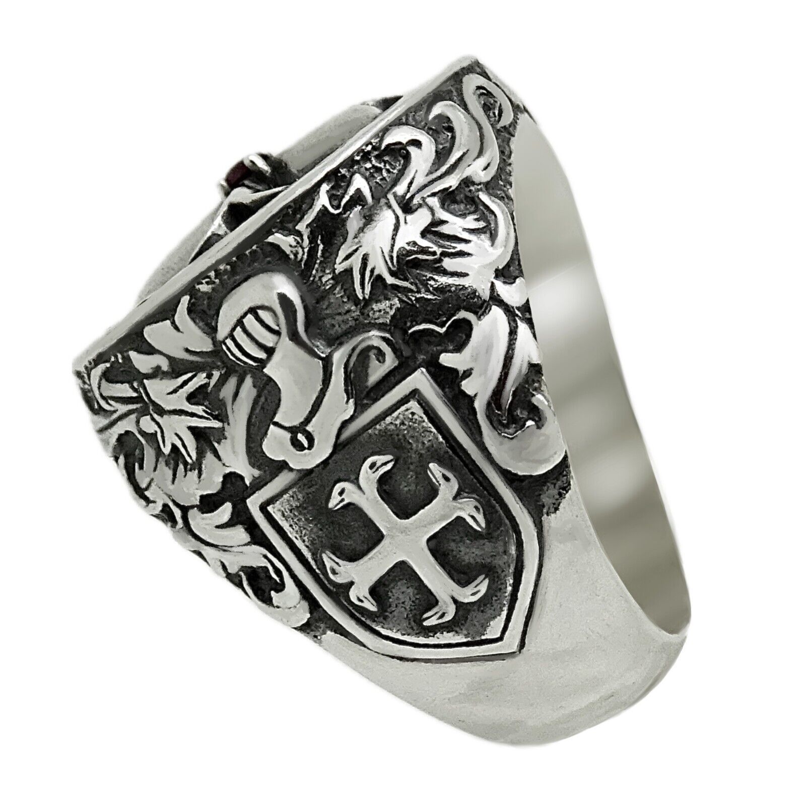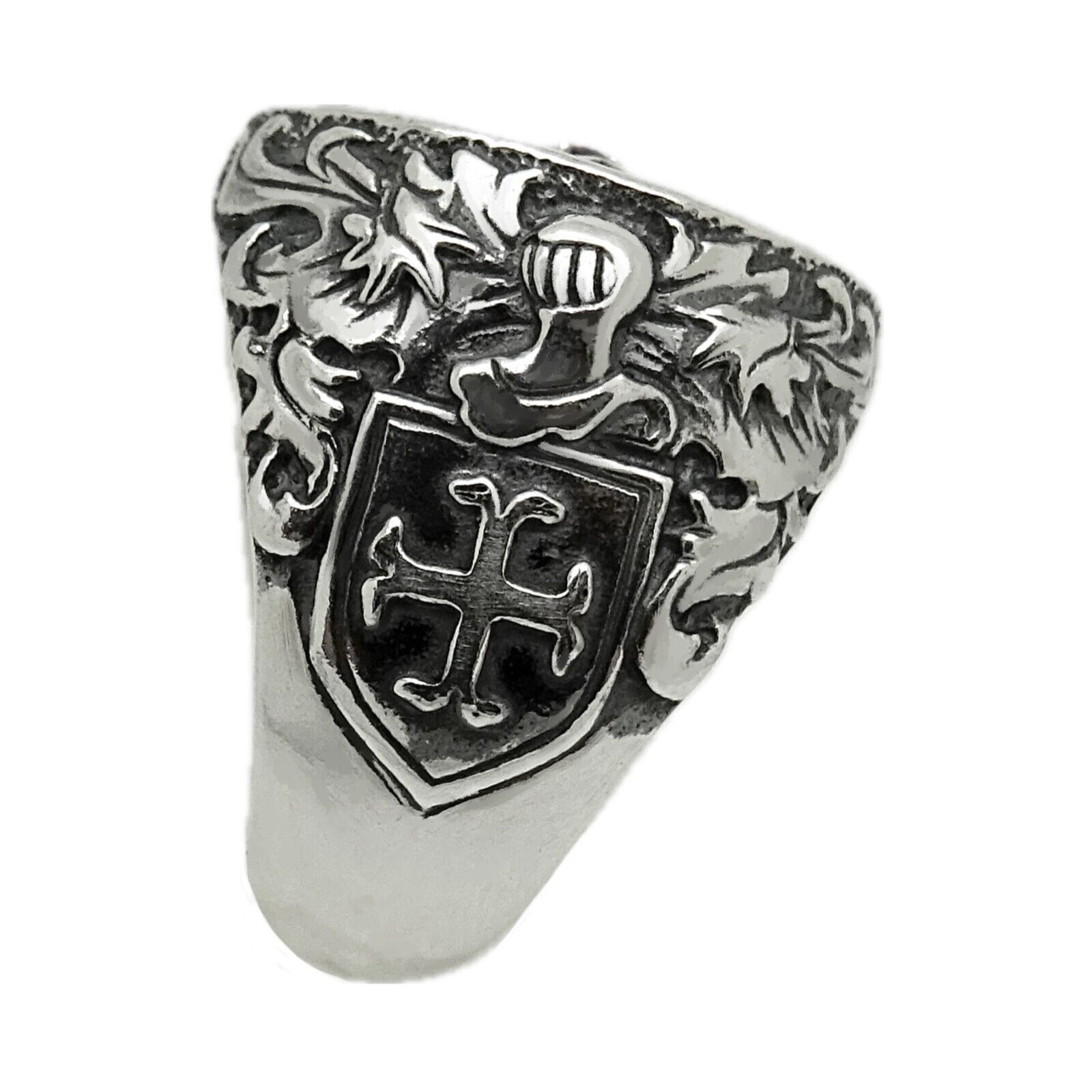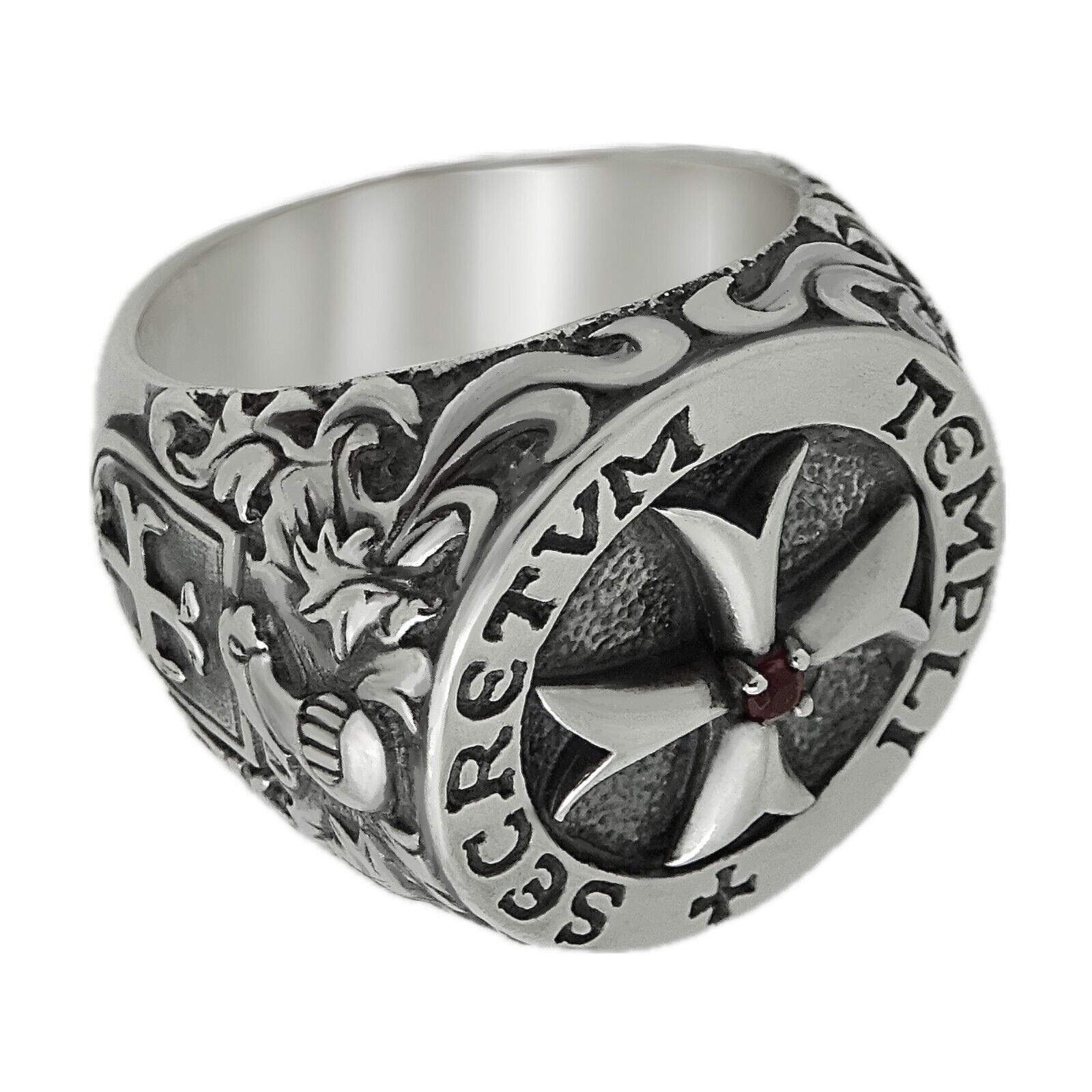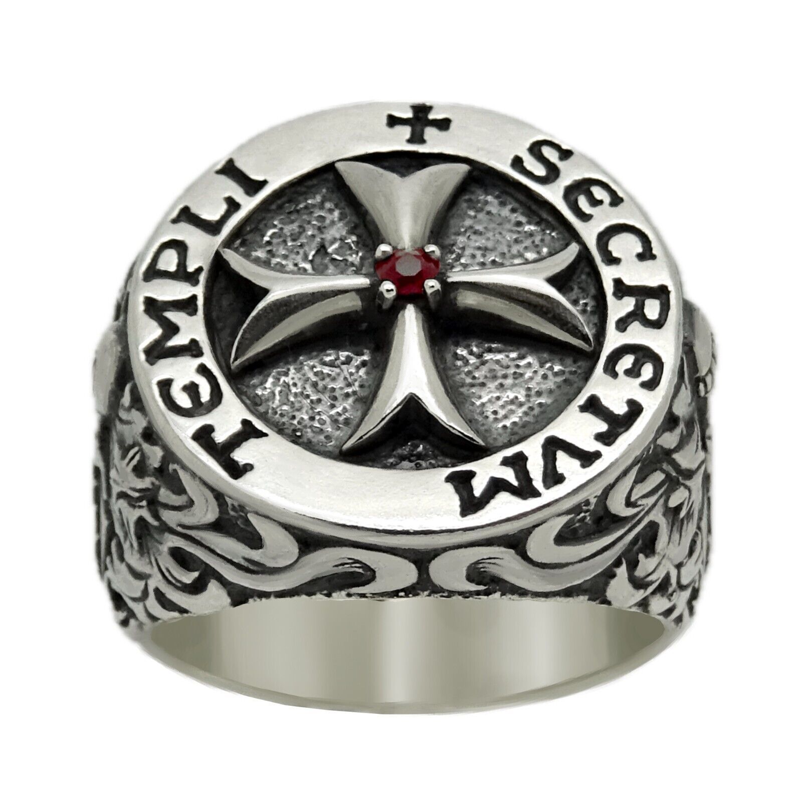 Knights Templar Crusader Masonic Silver 925 Men's Ring Maltese Cross Shield