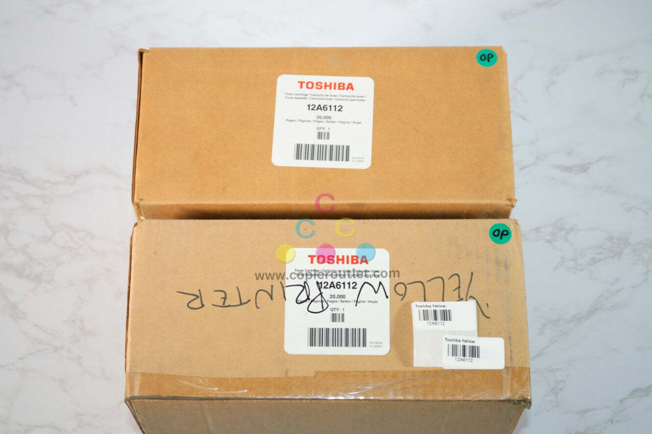 Lot Of 2 Genuine Toshiba High - Yield Toner Cartridges, 12A6112 For Toshiba e-STUDIO 20P / 25P New - Open Boxes! Please Reference Photos! SAME DAY SHIPPING For faster shipping service, please send us a message or contact us. Copier Clearance Center Copier Clearance Center was established in 1993. We buy and sell both domestically and internationally and have wide assortment of used copiers, fax machines and printers of all brands, All of our copiers are in house and available for your inspection. They all have been tested and rated for functions, cosmetics and overall appearance. We also sell genuine accessories of all popular brands, Our accessories include toners, imaging units, developers and copier parts such as fax board, fixing unit, fuser unit, roller, cleaning brush, drum blades etc. For more detailed information on our current inventory of Copiers and Accessories all potential buyers or their representatives are welcome to give us a call. We are more than happy to assist you with the pricing and guide you to find the copiers you wish to buy. Best Regards, On-Line Sales Team Copier Clearance Center Business Hours (Pacific Time): Monday-Friday: 9:00 am to 5:30 pm