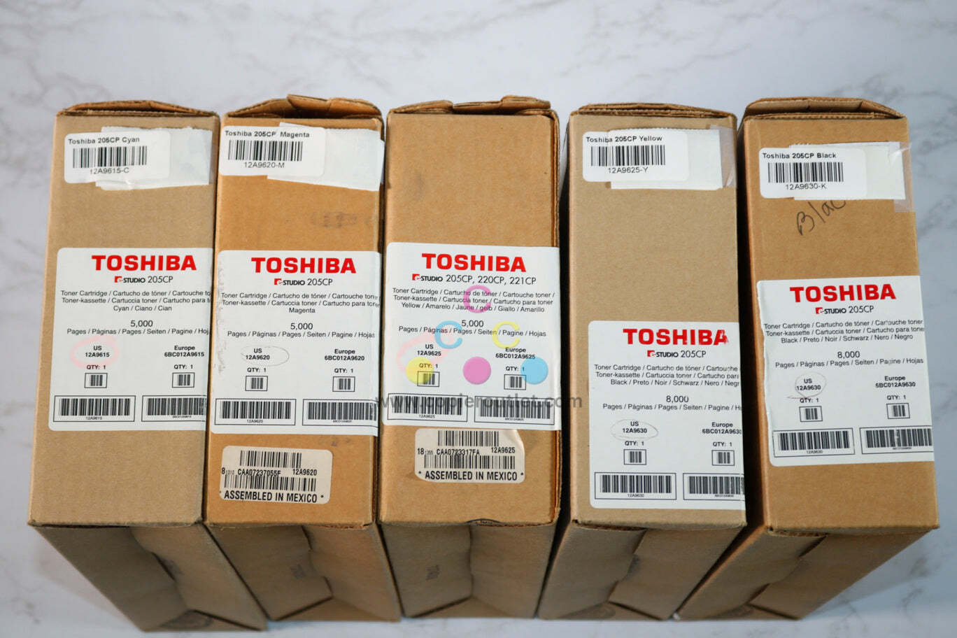 5 OEM Toshiba e-STUDIO 205cp CMYKK Toners 12A9615,12A9620,12A9625,12A9630