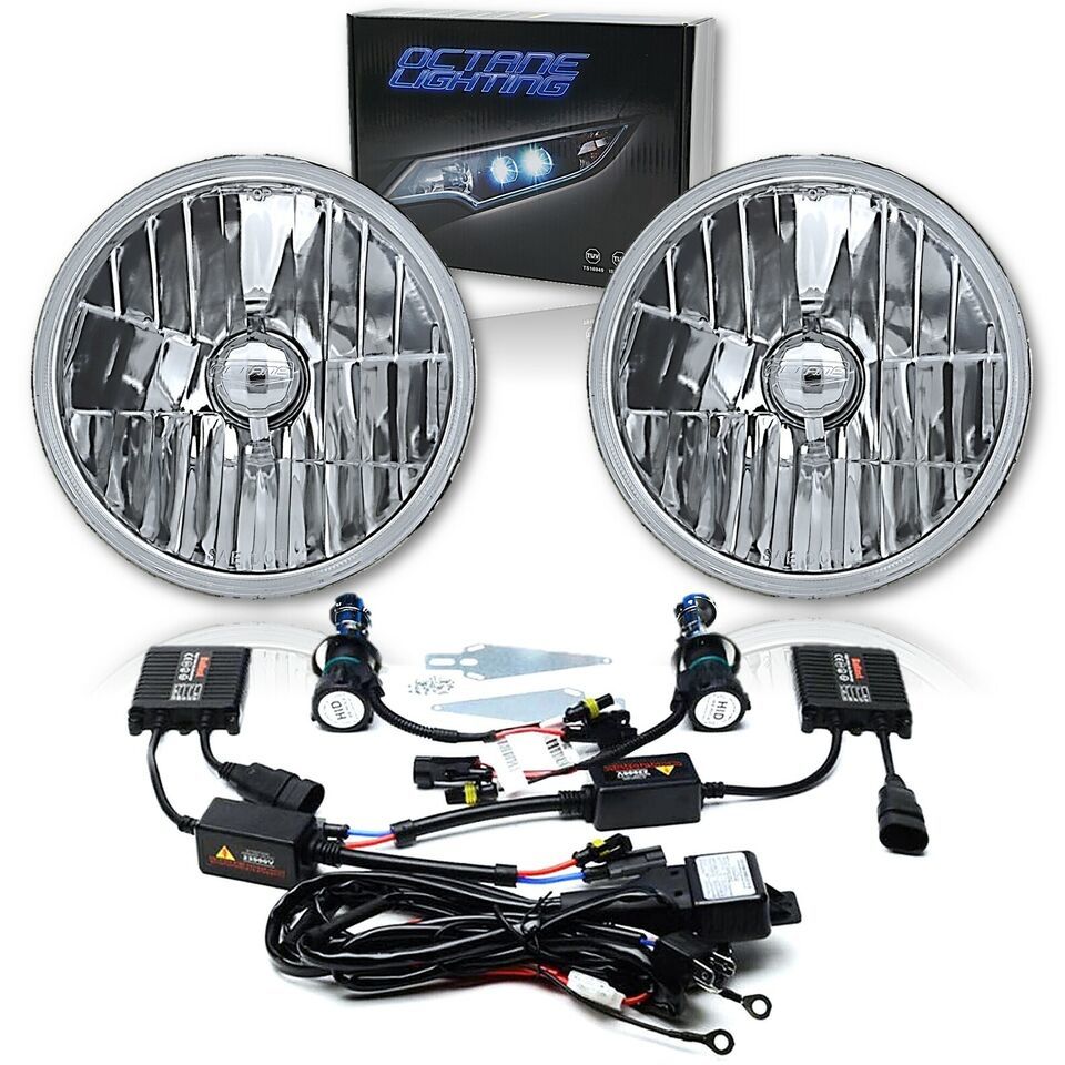 7" Crystal Glass/Metal Headlight 6k 6000k White HID Light Bulb Headlamp Kit Pair