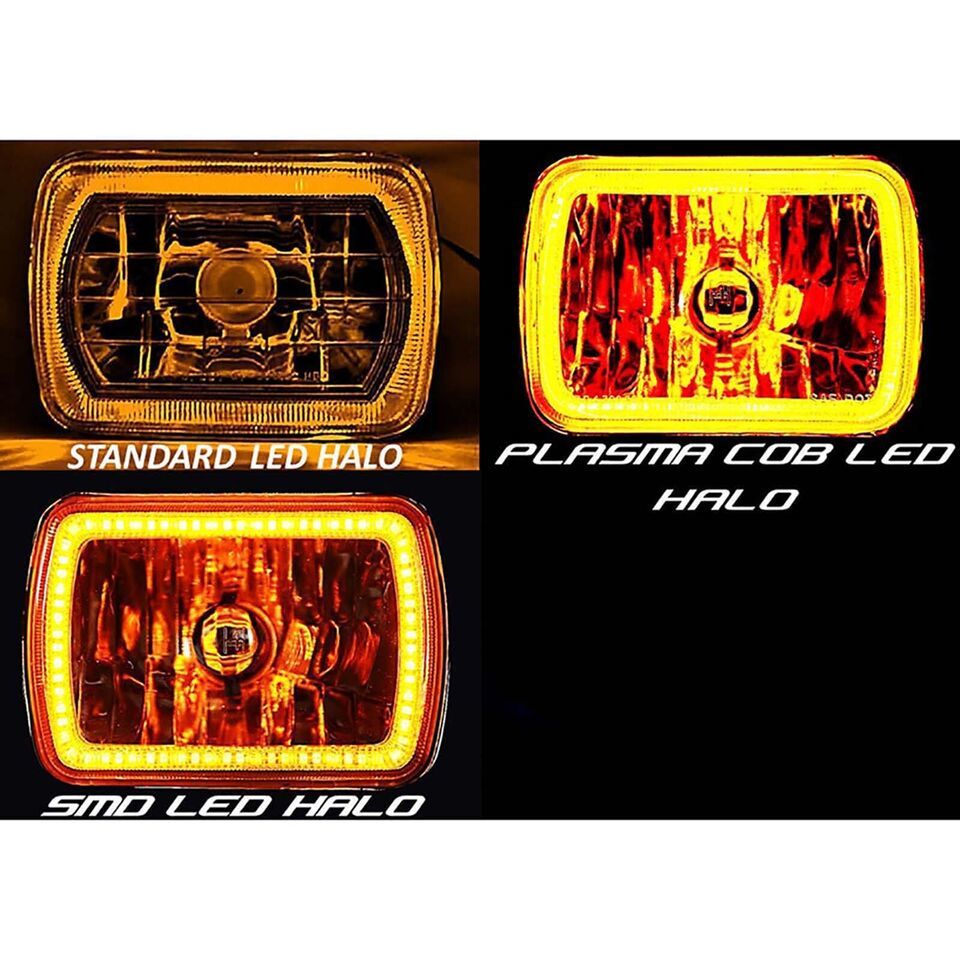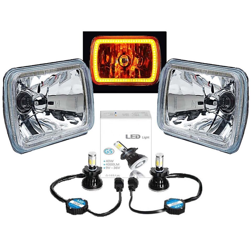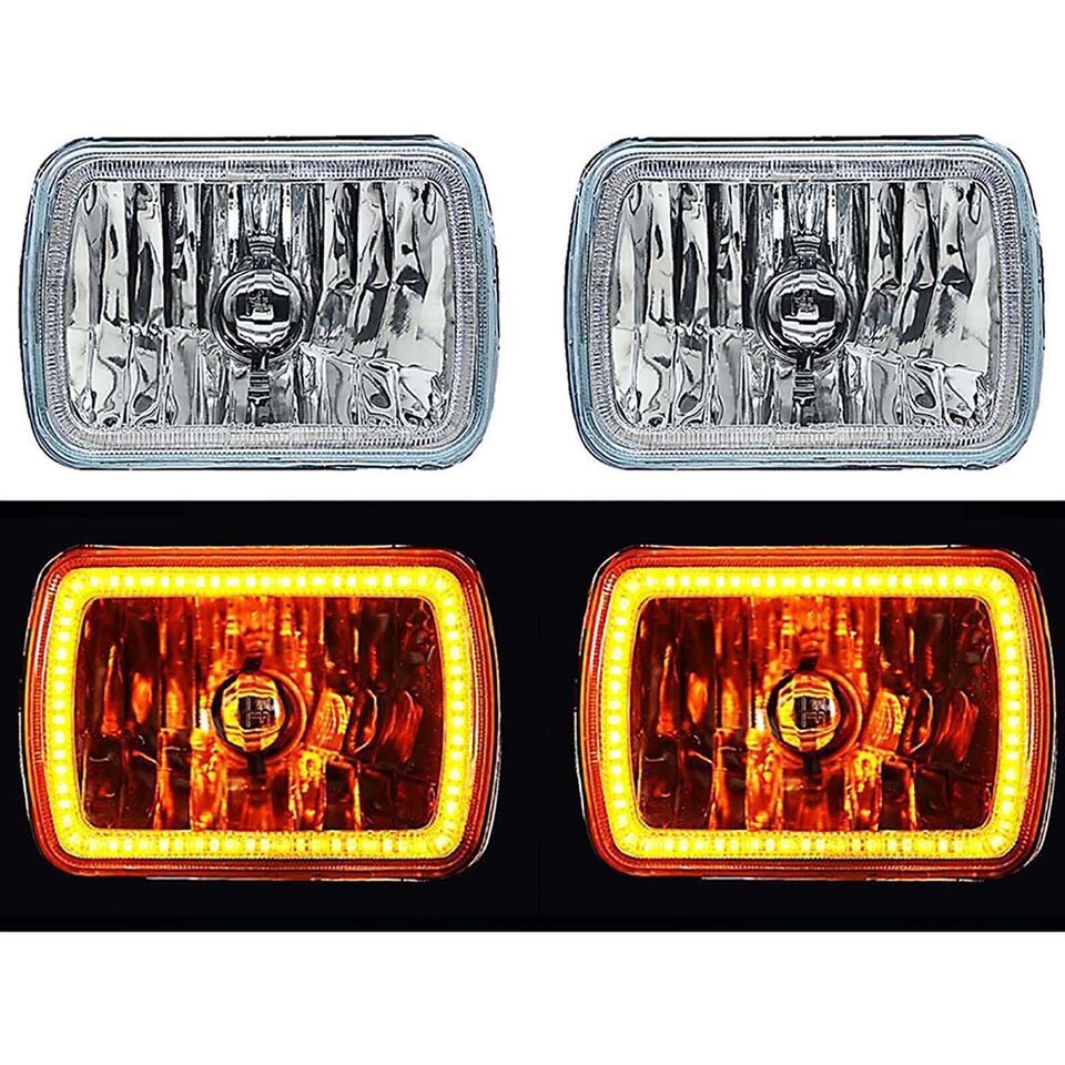 7X6" Amber SMD Halo Glass/Metal Headlight 6000K 40W LED Light Bulb Headlamp Pair