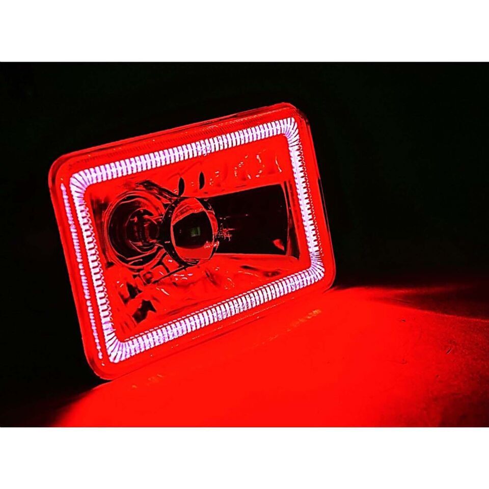 4X6 INCH SQUARE H4 CONVERSION RED LED HALO HEADLIGHTS - PAIR