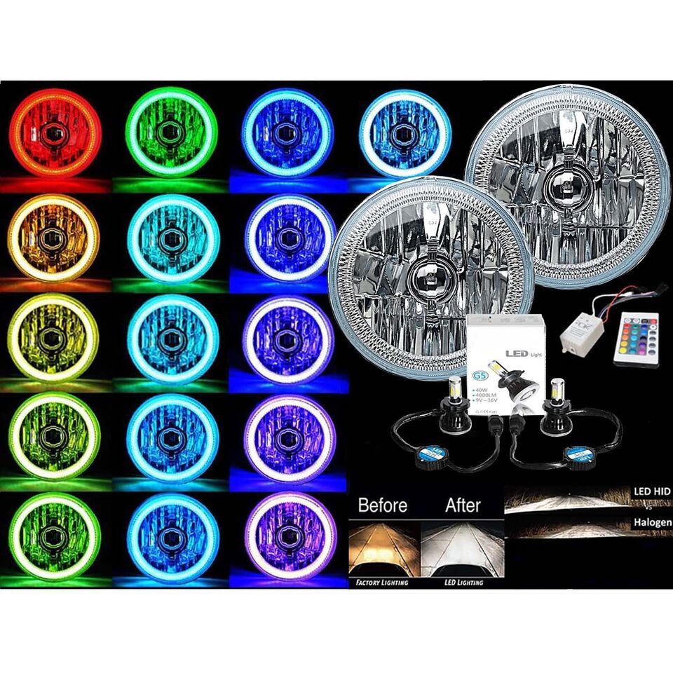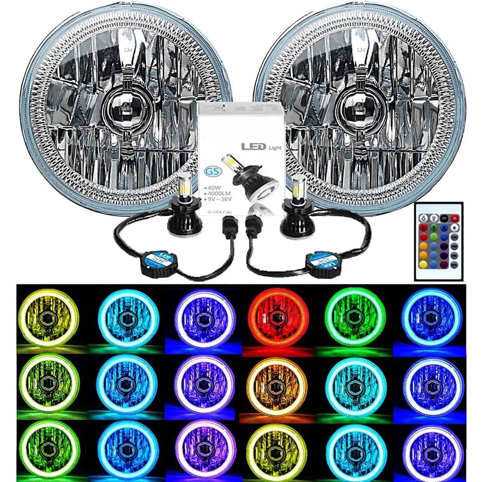 7" RGB COB Multi-Color White Red Blue Green Halo Angel Eye 6K LED Headlight Pair