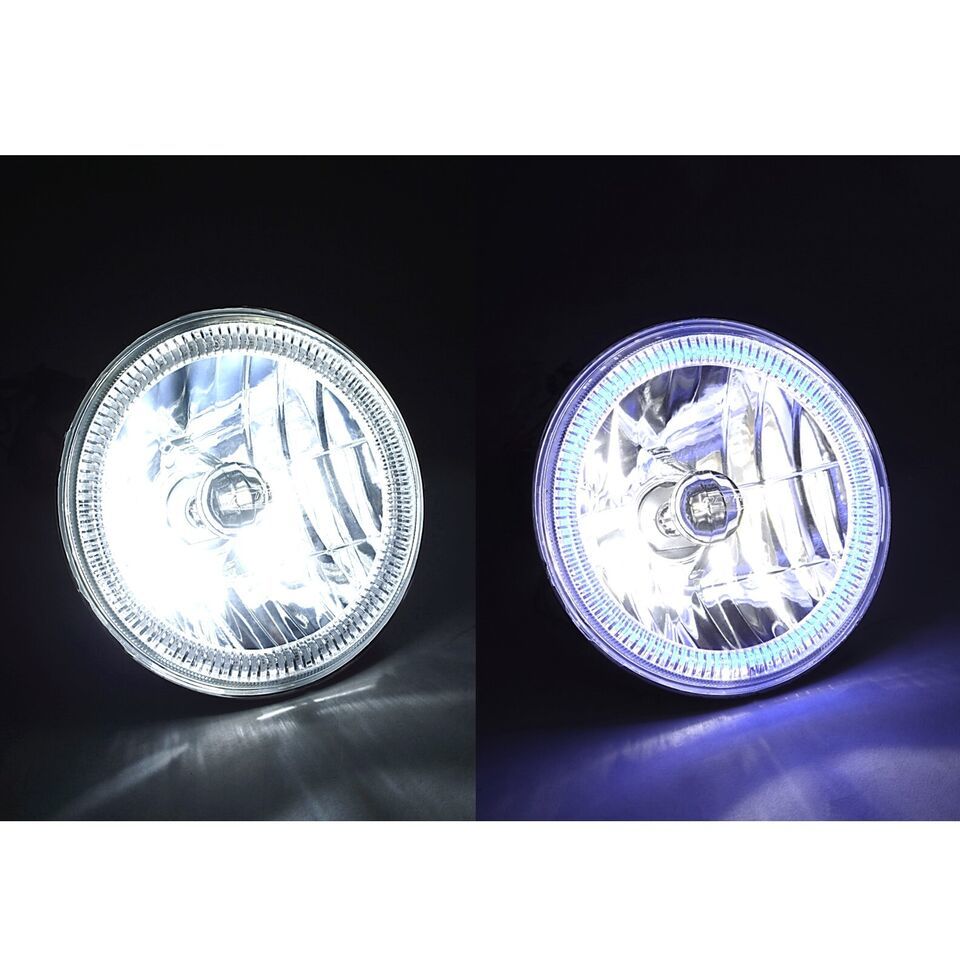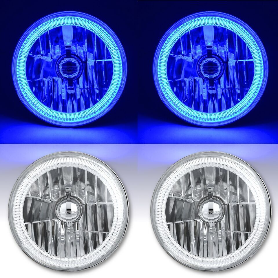 THIS LISTING IS FOR A NEW PAIR (2 bulbs) OF 7" 12 VOLT HIGH/LOW BEAM 6000K LED HEADLIGHTS WITH BLUE COB LED HALO ANGEL EYE RINGS. THESE HALO RINGS ARE EXTREMELY BRIGHT AND CAN EASILY BE SEEN DURING THE DAY AND NIGHT EVEN WITH THE HEADLIGHT ON. THESE HEADLIGHTS HAVE GLASS LENSES. THIS SET INCLUDES 2 LOW/HIGH BEAM HEADLIGHTS WITH 20/40W 6K LED LIGHT BULBS. LED RING IS POWERED WITH A POWER AND GROUND WIRE THAT CAN BE SPLICED DIRECTLY TO THE CARS 12V ELECTRICAL SYSTEM. HALO RINGS CAN BE CONNECTED TO PARKING LIGHTS, TURN SIGNALS, HEADLIGHTS, OR A SEPARATE SWITCH. THESE ARE DOT SAE APPROVED.