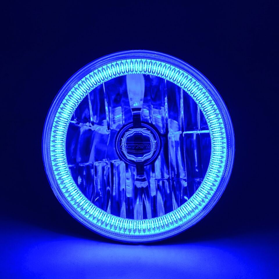 7" ROUND CRYSTAL HEADLIGHT WITH COB BLUE HALO RING
